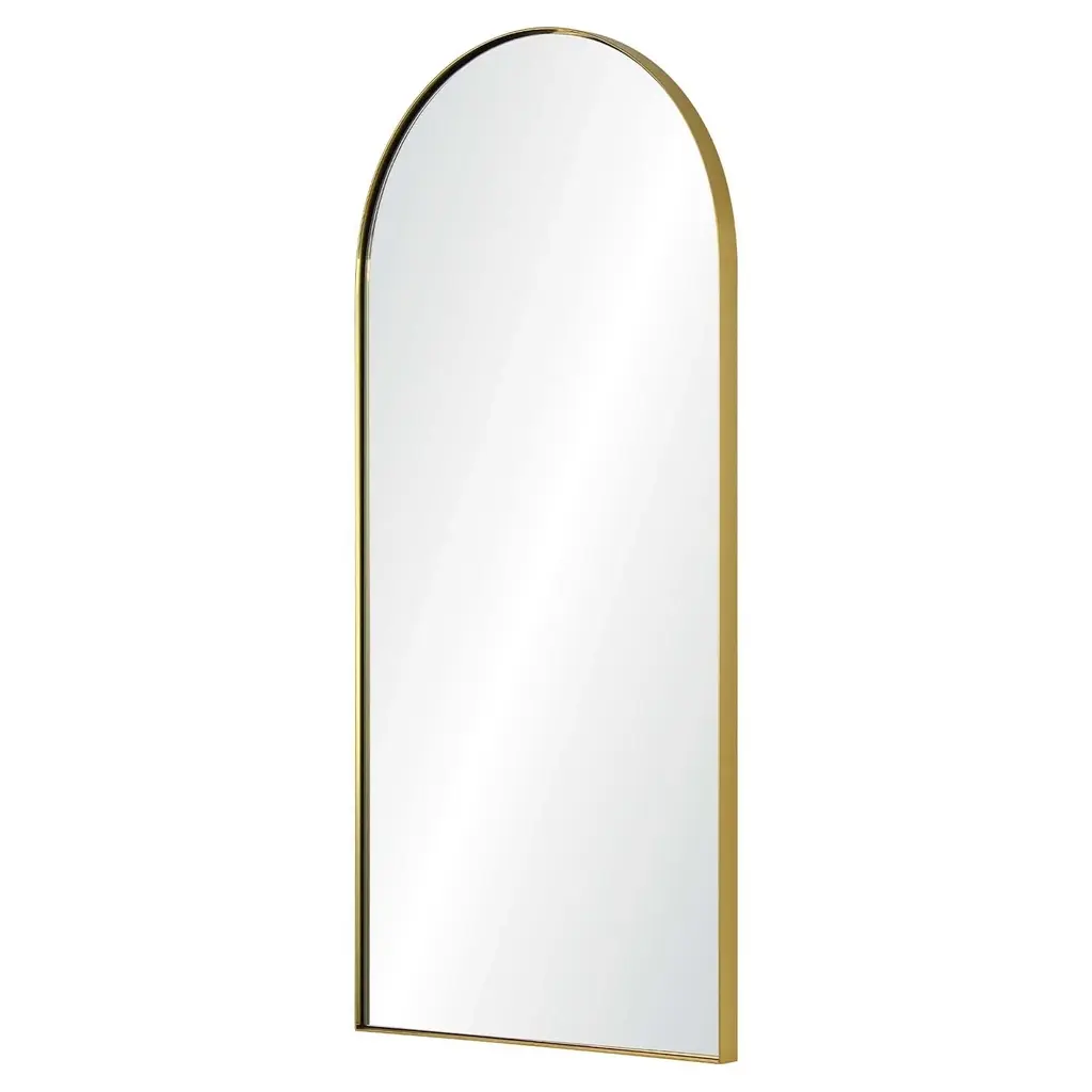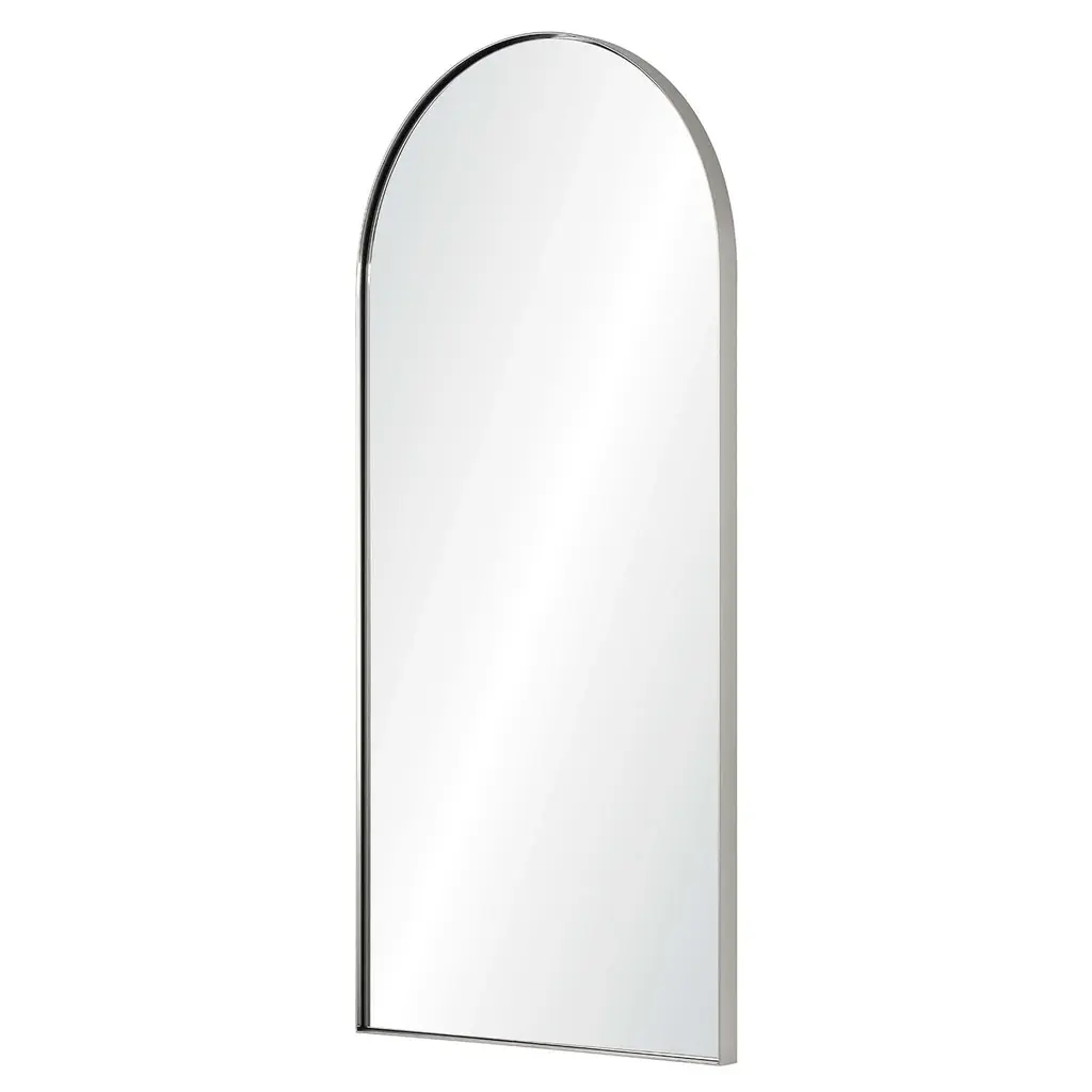 This elegant mirror or Mirror Home will add that wow factor to any room! With a frame finished in your choice of Burnished Brass, Black Nickel, or Polished Stainless Steel, this elegant mirror features an arched top. This mirror is both sophisticated and versatile and will elevate space. Finish: Burnished Brass, Black Nickel, or Polished Stainless Steel Sizes: 22" x 46" Weight: 27lbs Non Beveled edge Cleat & hanging hardware provided Materials: Wood, mirror Authorized Mirror Home retailer Ships via FedEx Free shipping in the continental U.S.