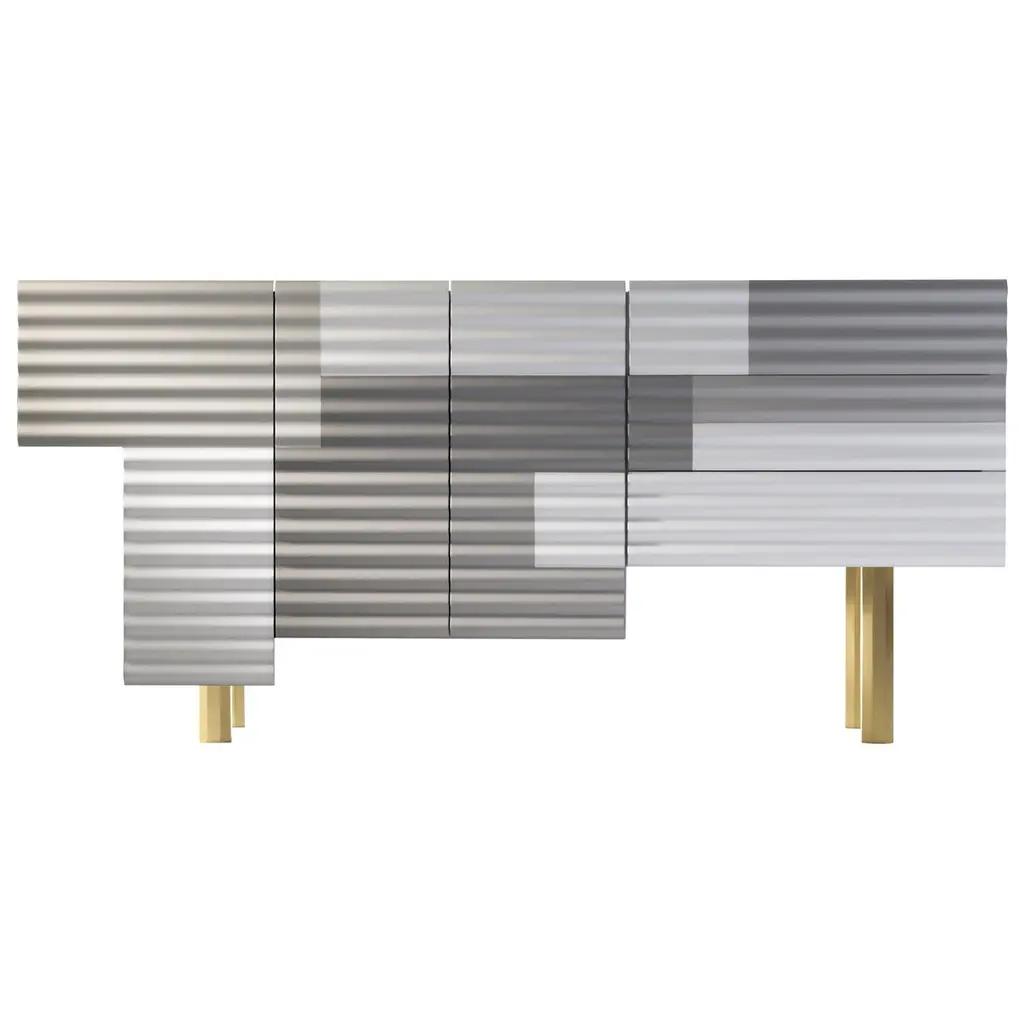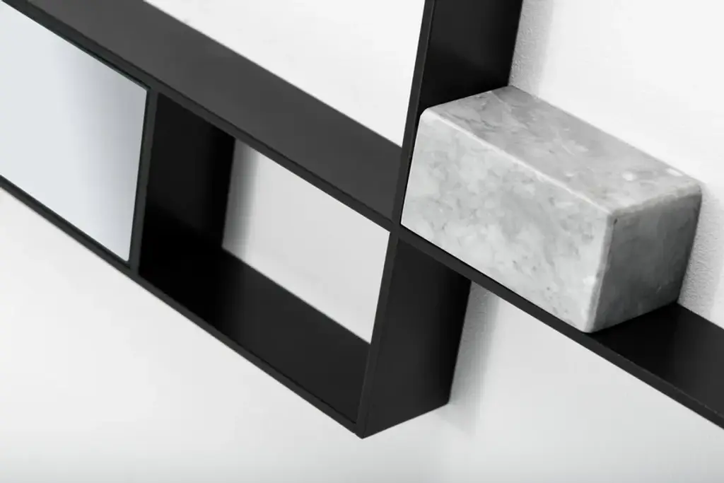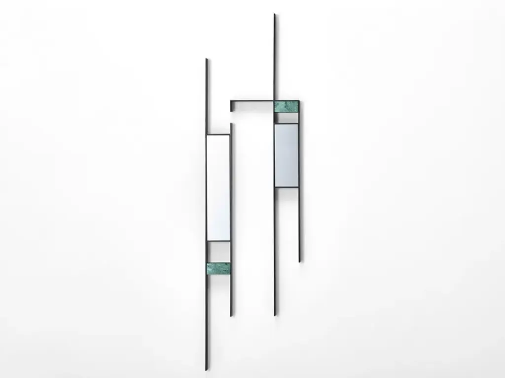 An inspiration coming from the agricultural landscape, that guided the architects Irene Goldberg & Pitsou Kedem to develop Mirror Lines, the new MDF Italia collection of six mirrors.More precisely, the irrigated fields and the rice paddies seen from above led the architects to resume the geometric patterns of that world, projecting them into a creative line of mirrors.The glance is exciting: in the metal frame next to the light reflected by the mirrors, decorative inserts in different materials stand out. A furnishing solution that irradiates vitality and energy, for an unusual, but original and highly involving overall view.“The opportunity to work with onyx, steel and other materials allowed us to add nature in our design” the designers explained. “Marble and brass, so substantial and with changing colours, seemed to be the simplest way to pay tribute to the fruits of the earth, taming these materials to the rituals of everyday life”.Mirror Lines is a suggestive and versatile collection, to enliven the home walls with new geometries and surprising effects, fit for both classic and contemporary spaces. Structure and typesSteel structure, 5 mm thick, powder coated in matt black nickel colour or in matt pearl nickel colour.There are six formal types (4 horizontal and 2 vertical) which, according to their scheme or layout, can create big configurations of great impact.• Composition 1, L210 D5 H25 cm• Composition 2, L164 D5 H45 cm• Composition 3, L155 D5 H30 cm• Composition 4, L155 D5 H45 cm• Composition 5, L12 D5 H145 cm• Composition 6, L32 D5 H140 cmWall fixing through built- in brackets with multiple drilling.Each composition, including a 4 mm thick mirror with bevelled edging, is completed with decorative elements, specifically:• brass: black medium density fibres panel, veneered with a matt brushed brass sheet with transparent acrylic coating;• marble/stone: marble element available in white Carrara marble, Guatemala marble, or green onyx.