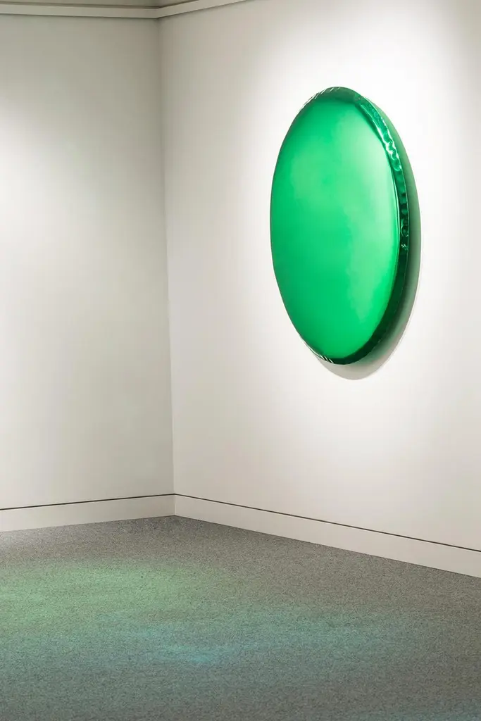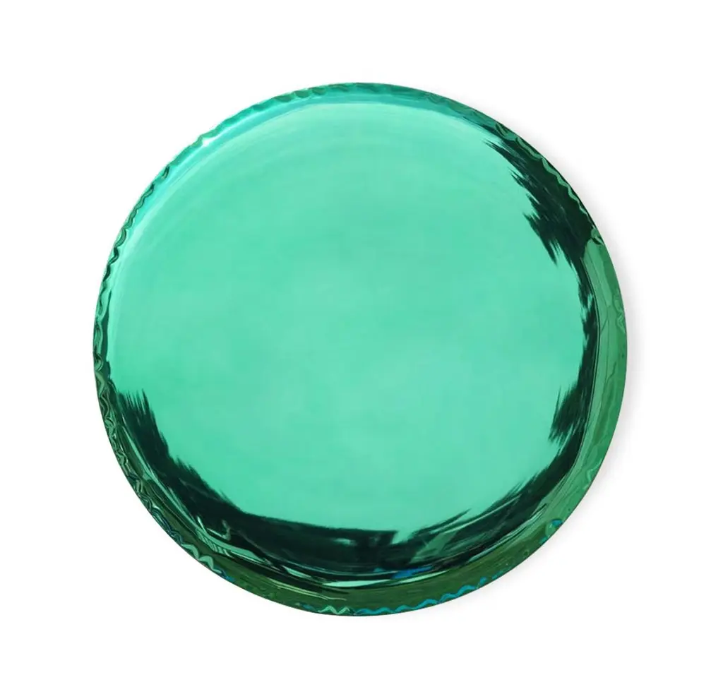 "OKO 150 contemporary mirror by ZietaGradient collectionNew model created in 2020Stainless steelMeasures: 150 x 6 cm.Three colors available: - Emerald green - Sapphire blue- Gradient emerald/sapphireZieta is best known for his collection of stools “Plopp” made through the technologist Fidu. With the same principle Zieta Prozessdesign conceived mirror collections made of stainless steel called “Tafla”, “Rondo” and “Rondel”. Two laser-cut metal sheets are first welded together before air is injected between them until they separate from each other forming a three-dimensional object.