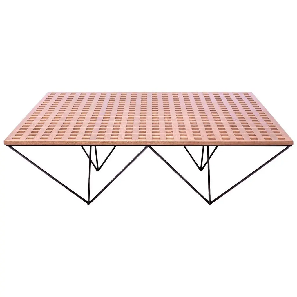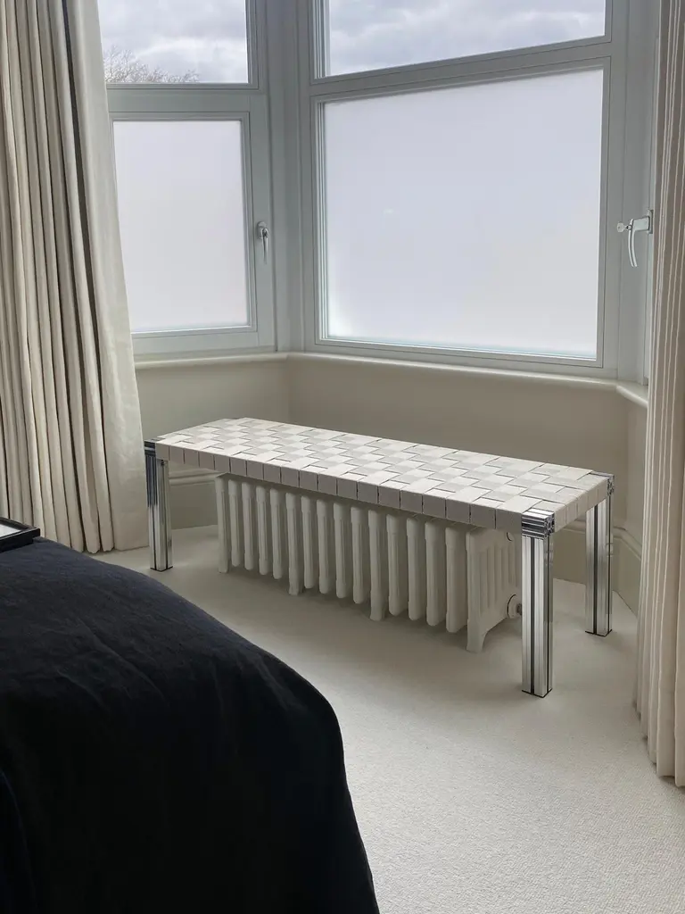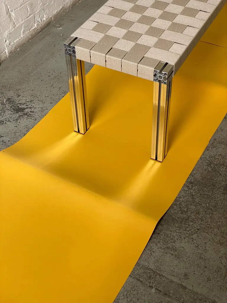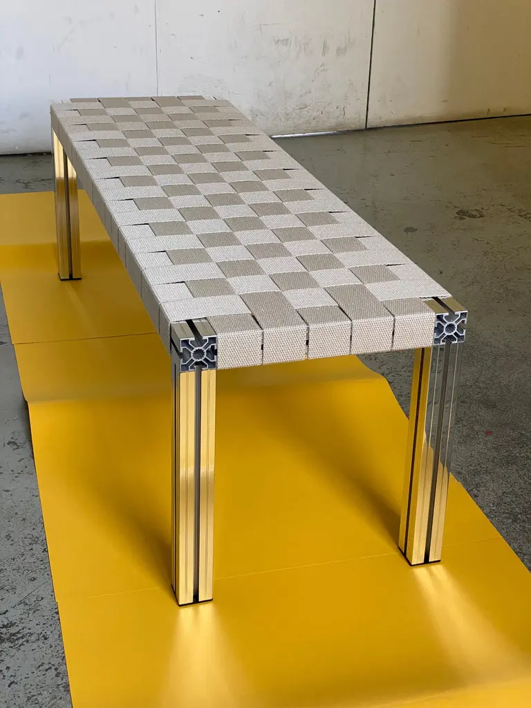 Originally realised for the Hepworth Gallery in Wakefield and inspired by Donald Judd and Børge Mogensen, Anodised Wicker marries industrially extruded and anodised aluminium with hand-woven cane wicker, rush envelope and flax webbing seats. The clinical and precise aluminium contrasts the warm and organic material. To this day we assemble the pieces in my studio in London and apply the cane, rush or webbing seating ourselves.The collection consists of this bench sized 1282mm x 408mm x 430mm (W x L x H) available with a Scandinavian flax webbing (this listing), woven glossy lapping cane seating or a reel rush envelope seating, a shorter stool also available with the same seating options and a cane woven armchair.The frame and legs can be mirror polished aluminium (this listing), powder coated (any colour) or anodised grey or in colour.