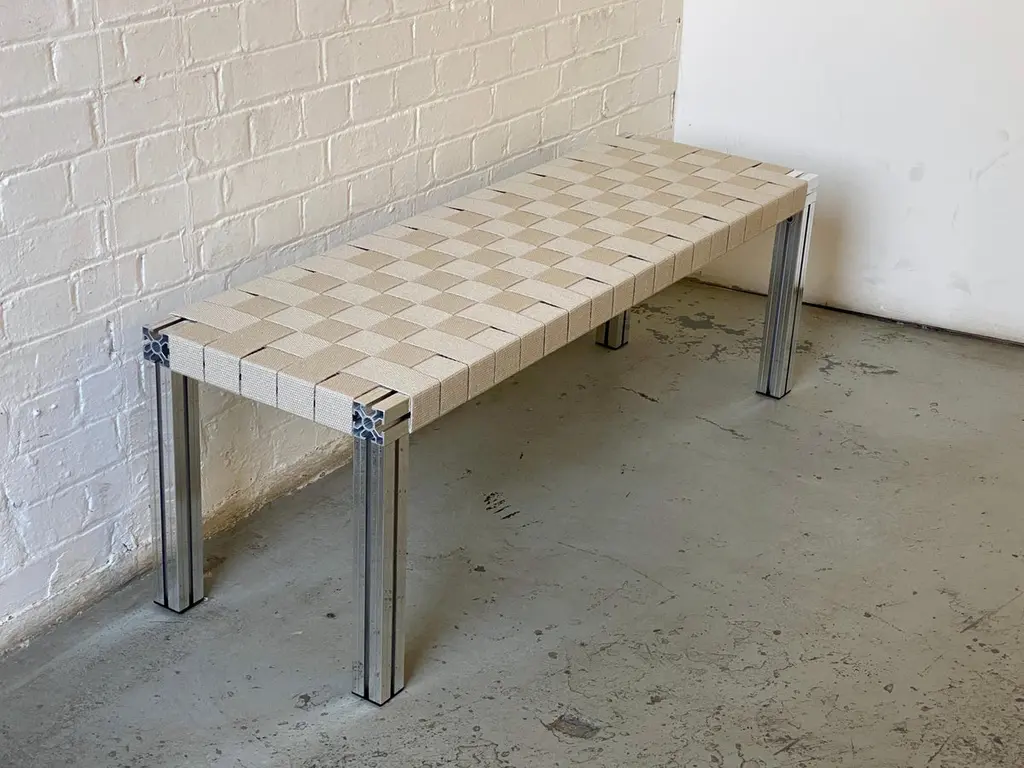 Mirror Polished Aluminium Bench With Flax Webbing Seating