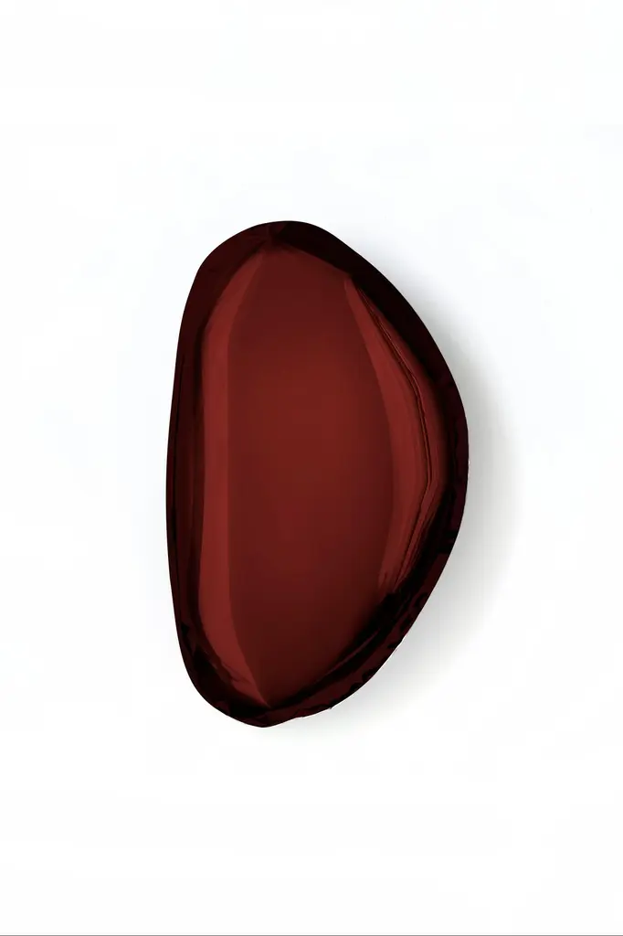 "Tafla O4" contemporary mirror by ZietaTransition Collection: finish Rubin RedOriginal Zieta mirror, delivered with certificate. Polished stainless steelMeasures: 123 x 64 x 6 cm.More shapes and sizes are available (see picture attached). Zieta is best known for his collection of stools “Plopp” made through the technologist Fidu. With the same principle Zieta Prozessdesign conceived mirror collections made of stainless steel called “Tafla”, “Rondo” and “Rondel”. Two laser-cut metal sheets are first welded together before air is injected between them until they separate from each other forming a three-dimensional object.