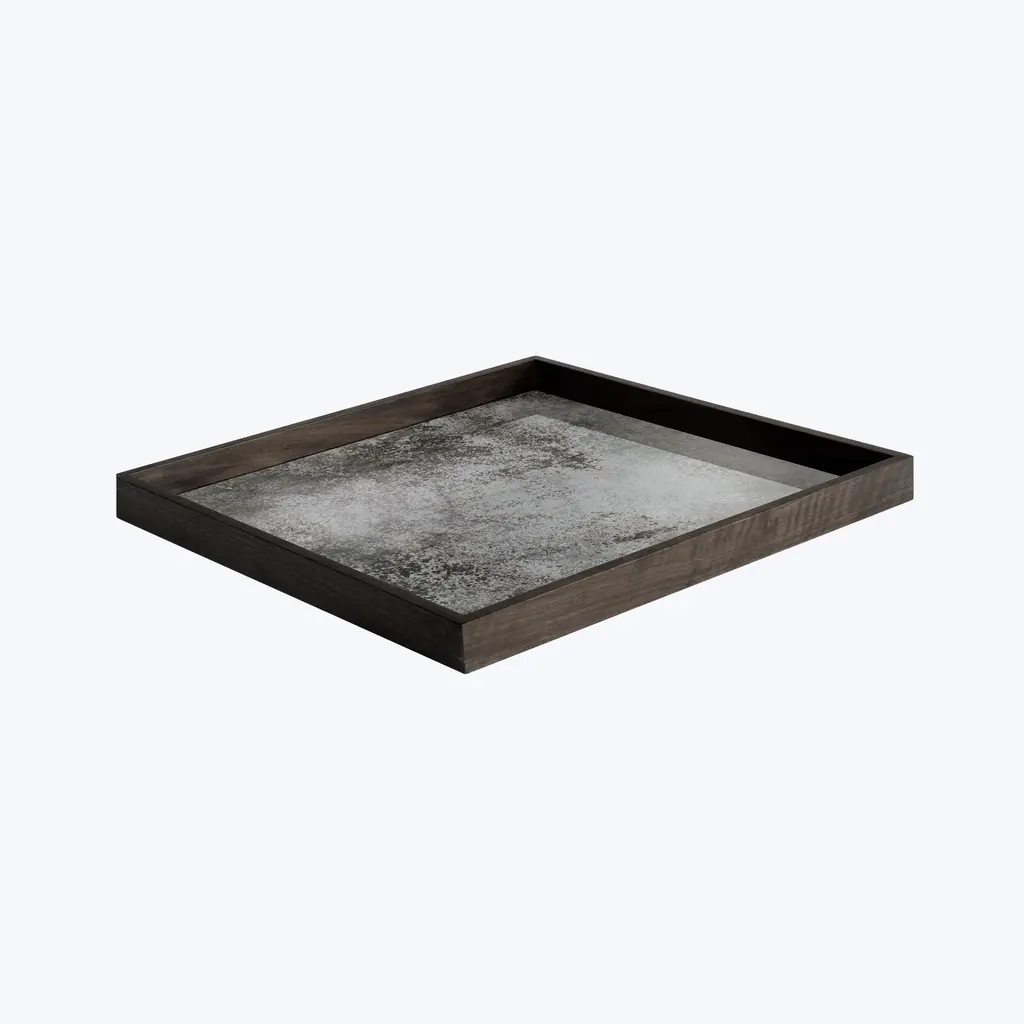 A subdued color palette meets captivating motifs inspired by nature and travel. This Charcoal mirror tray experiments with the balance between rich patterns offset with muted tones, revealing the beauty behind the deceivingly ordinary subjects from which inspiration is drawn. In doing so, this collection captures the essence of timelessness.