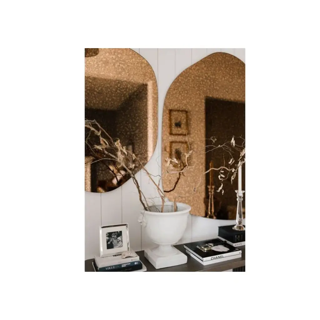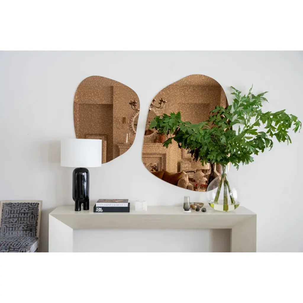 Incredibly eye-catching, the Phoenix Mirror boasts an unframed antique rust mirror with an organic form. It looks beautiful alone or styled as a pair. It easily hangs vertically or horizontally, lending visual texture and interest to the room.