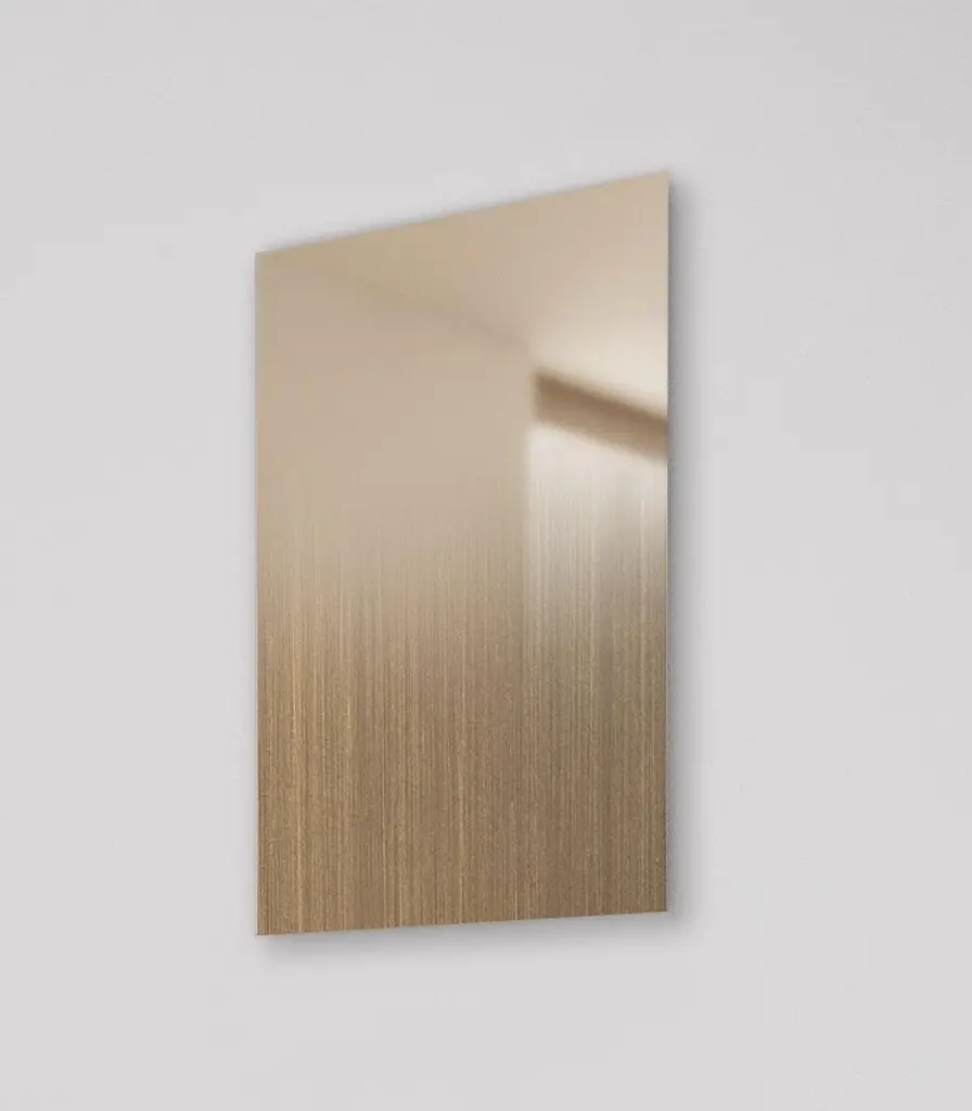 Mirror Zero XS Fading Brass Revamp 01 by FormaminimaLimited Edition of 200 pieces. Dimensions: D 0,5 x W 21,5 x H 29 cm. Materials: Satin burnished solid brass and metal.Limited Edition of 200 Pieces per model, numbered and signed with certificate of authenticity. This product is entirely handcrafted in Italy. Colour and textures may slightly differ depending on devices, and remain unique for each creation since the handcrafted features and materials of this object. Also available in different materials, finishes and sizes. Please contact us.By featuring a hand-applied polished gradient, carefully blended with a burnished satin matt texture, this small format wall mirror is the ambitious result of an innovative experimental craft technique of shallow shades, provided by a multiple-step finishing combination. A bold yet minimalistic décor piece, perfect alone or in a small batch mixing different materials and finishes for a sophisticated wall decoration statement.Formaminima is an emerging brand within the Italian Design panorama, prone to exploring the concept of object itself, in the field of lighting and product design in its broadest sense. This exploration starts in the first instance from the tradition, from the artisan mastery and that making full of charm, care, and perseverance.Each project is in fact crafted in those same places where the know-how is handed down and kept for generations, exclusively in our territory. Carefully selected workshops, ateliers, and studios become our precious partners in the creation of every single piece, conceived and designed by us. Therefore, in this latter, multiple knowledge is merged, especially that linked to high-quality materials, production processes, and an innovative aesthetic. Thus to achievewhat for us represents a contemporary Design Sleek Poetry.We create value through the masterly realization of unique pieces, as well as minimizing the intermediation between the Design product and its audience. Hence our projects result in the outcome of a direct collaboration between our designers and the excellence of Italian craftsmanship, along with its valuable know-how. To this end, we believe that a slow design process, together with its time of thought andresearch, is essential for what we believe Good Design may be.So this latter, passing from the inspiration to the concrete realization of each of our design creation, arrives directly to the customer.
