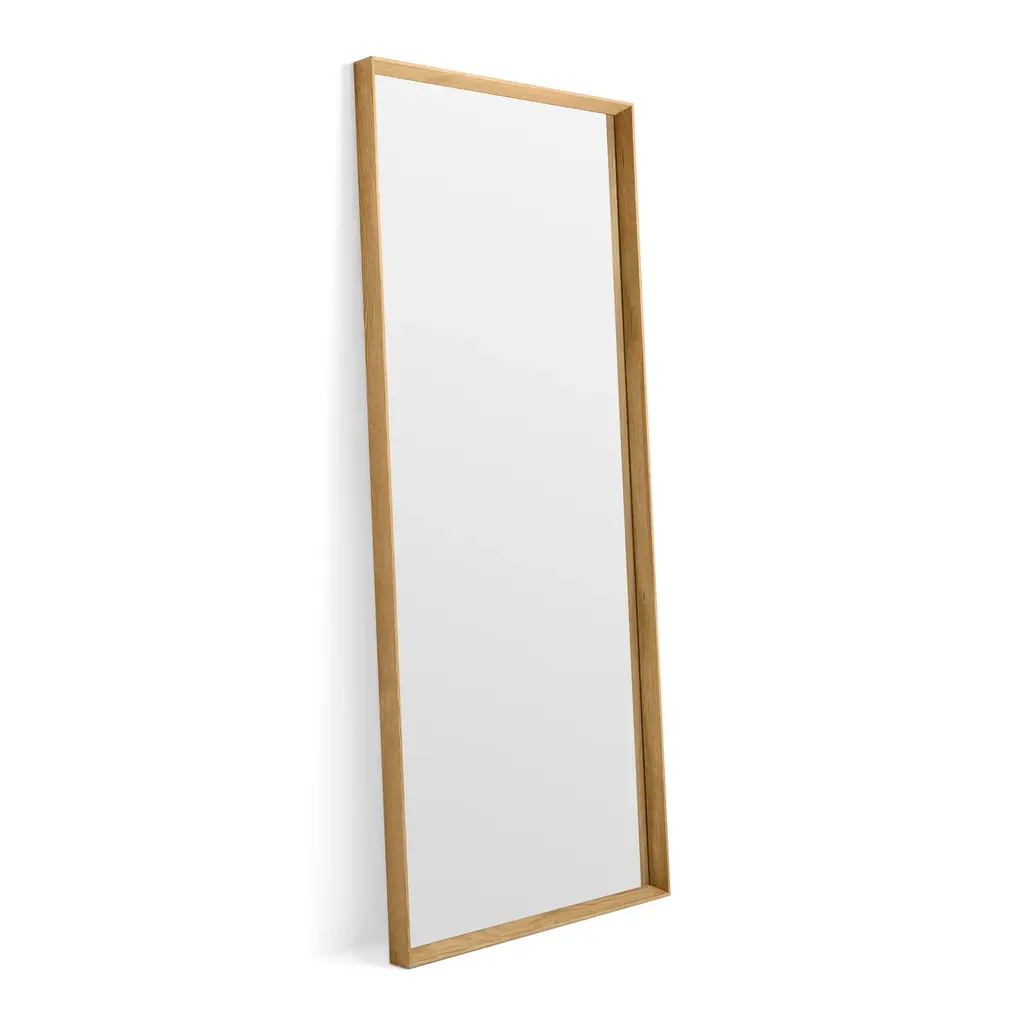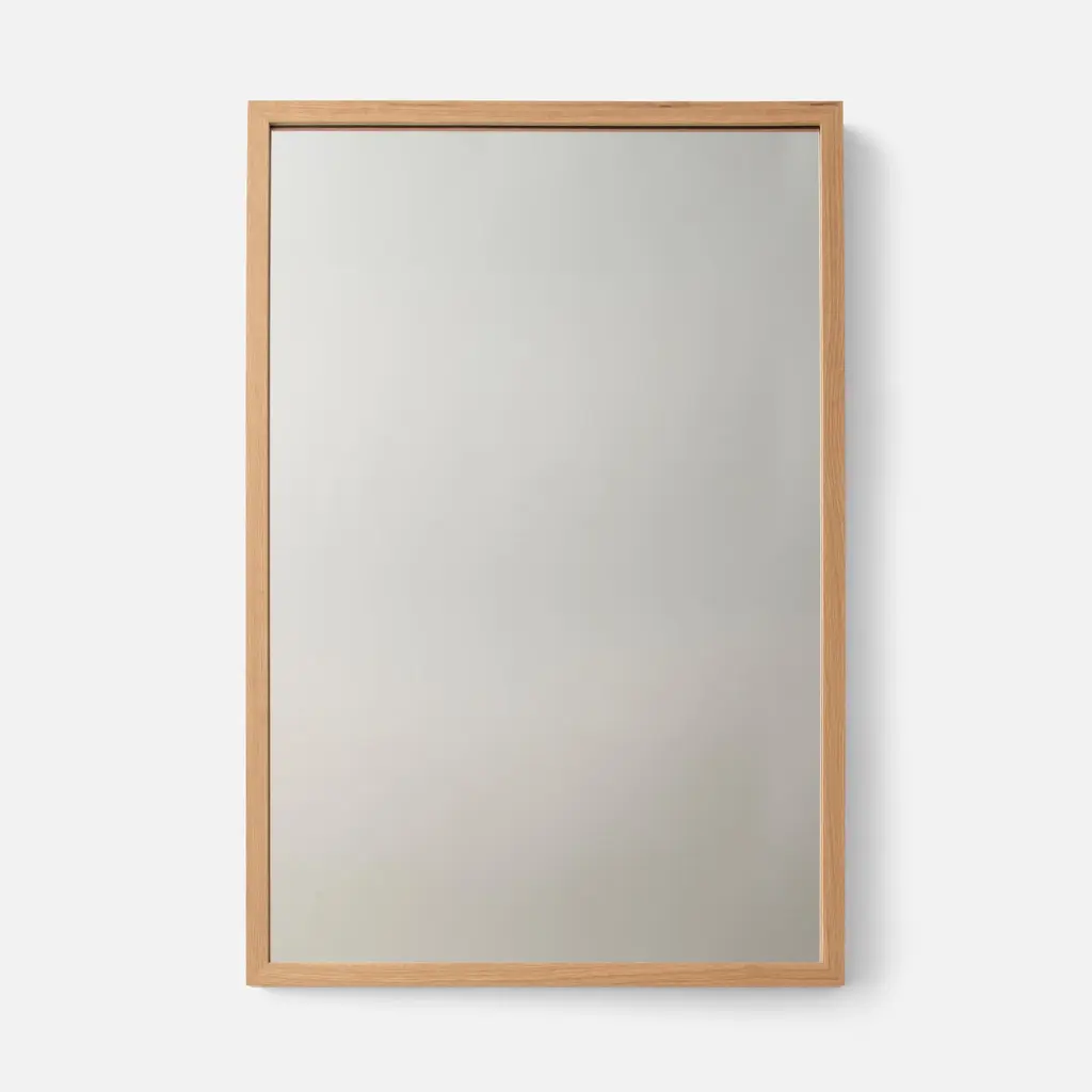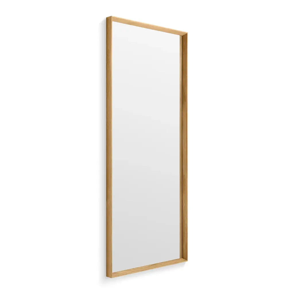 Solid walnut or white oak frames a simple mirror that complements every ensemble. Hang horizontally, vertically, this way, that way or lean confidently against a wall for a laidback, too-cool-for-school approach.
