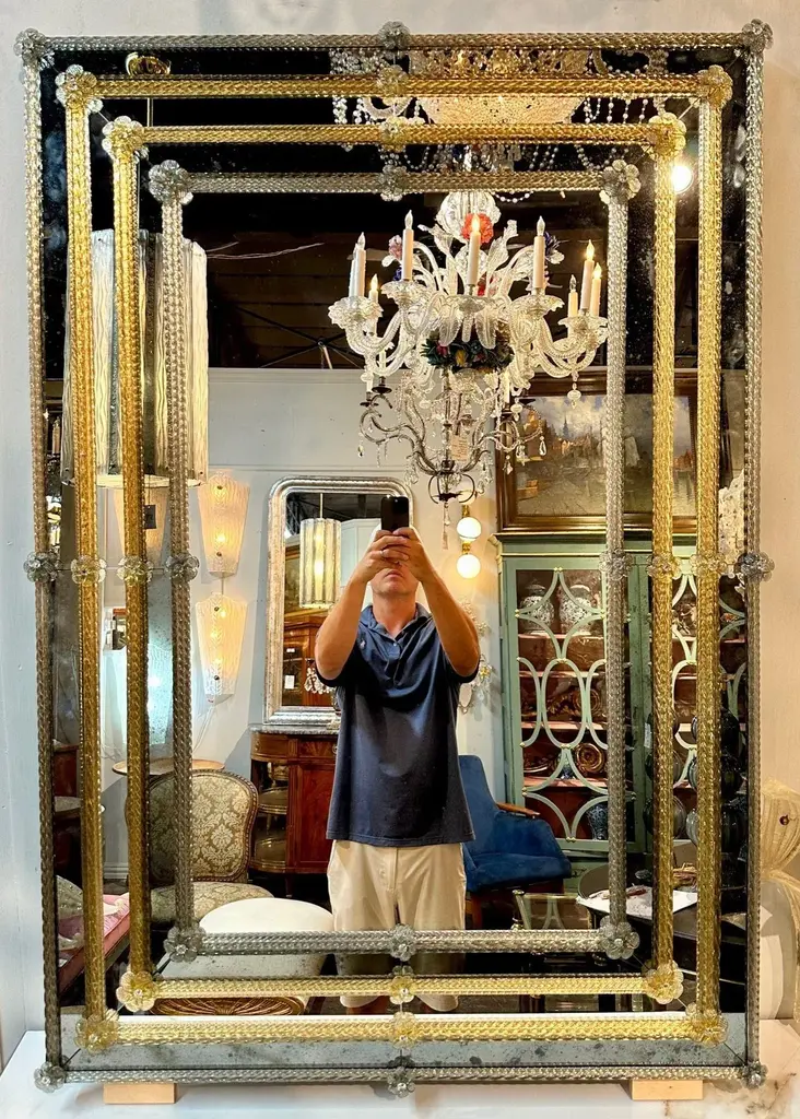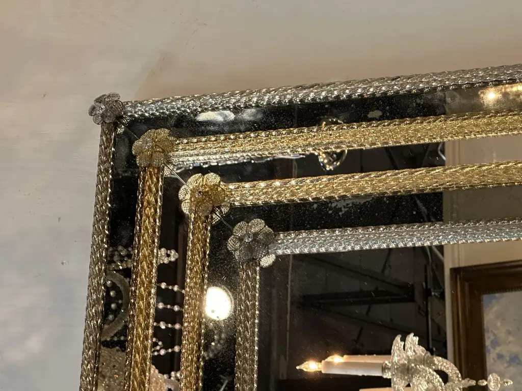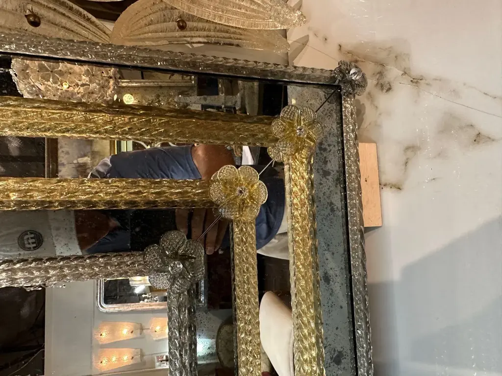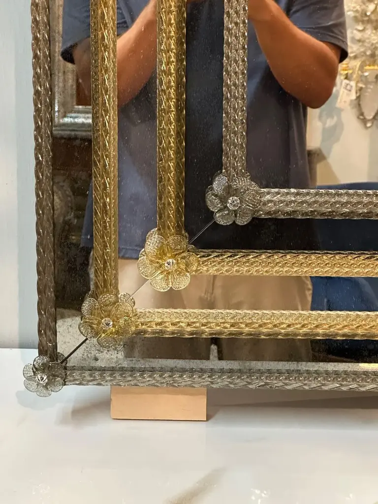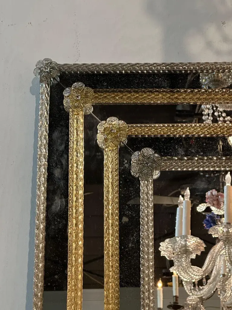 Fabulous modern 2 tone Murano glass mirrors. Beautiful silver colored and gold colored textured glass with flowers on the corners. True works of art! Exquisite!