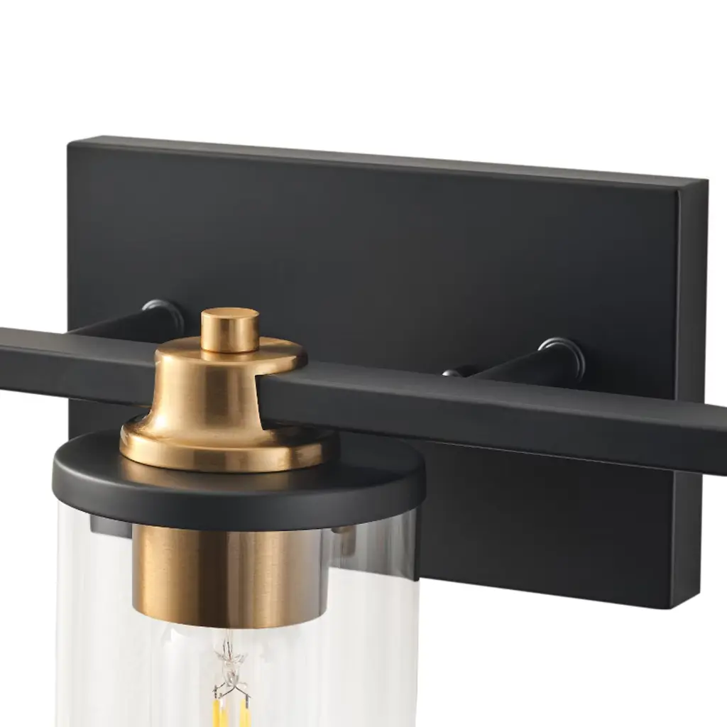 Modern 3-light Vanity Light, Black And Gold Bathroom Fixture, Up/down Clear Glass Wall Sconce, Over Mirror Lighting