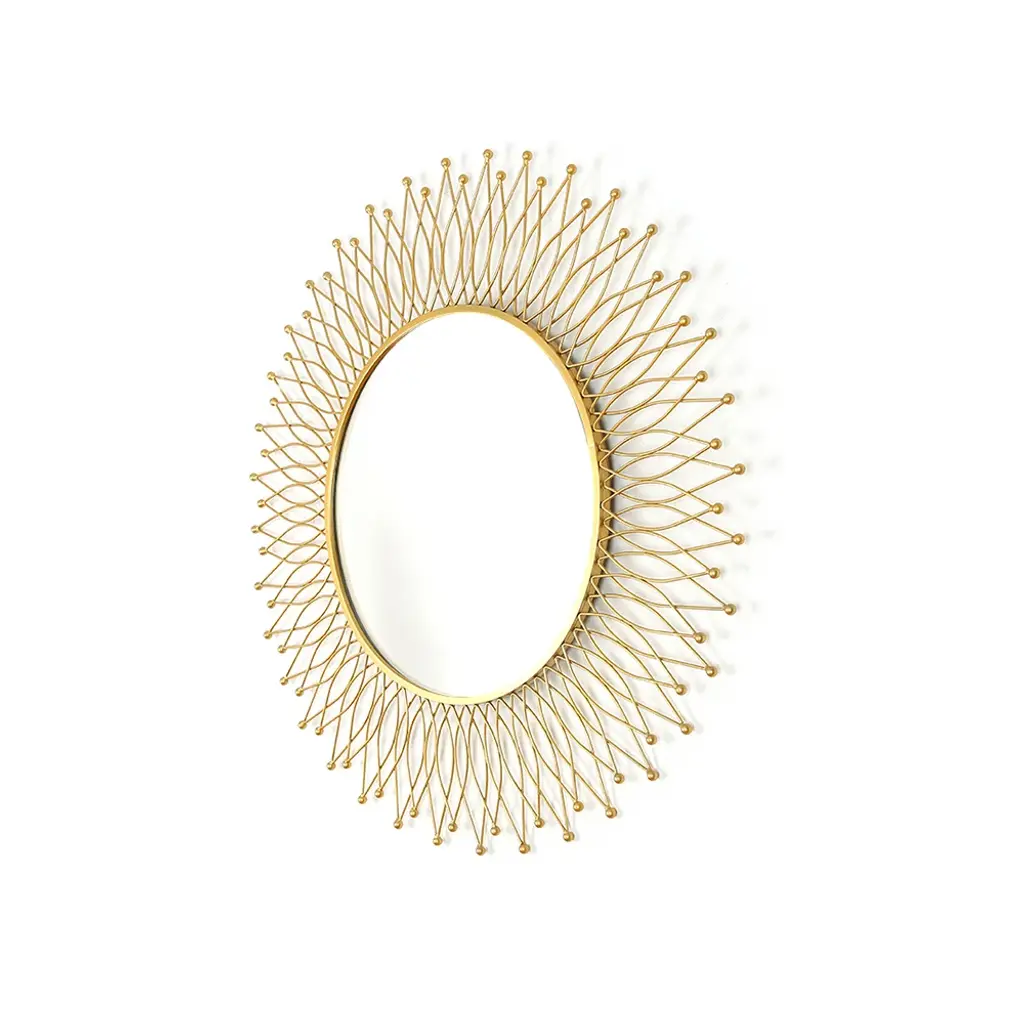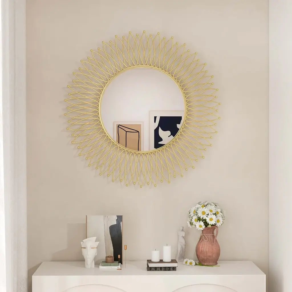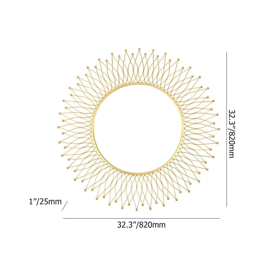 【Modern Geometric Style】This unique metal wall mirror is full of eye-catching appeal, showing an inspired sun design. With the embellishment of this wall mirror, the entire space becomes agile in an elegant and pleasant area. 【 High-Quality Material】This mirror is made of high-quality metal, which ensures long-term use. It can also be used as a housewarming gift, birthday gift, etc. to friends and relatives.
