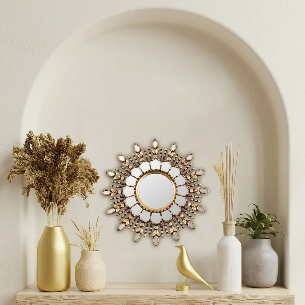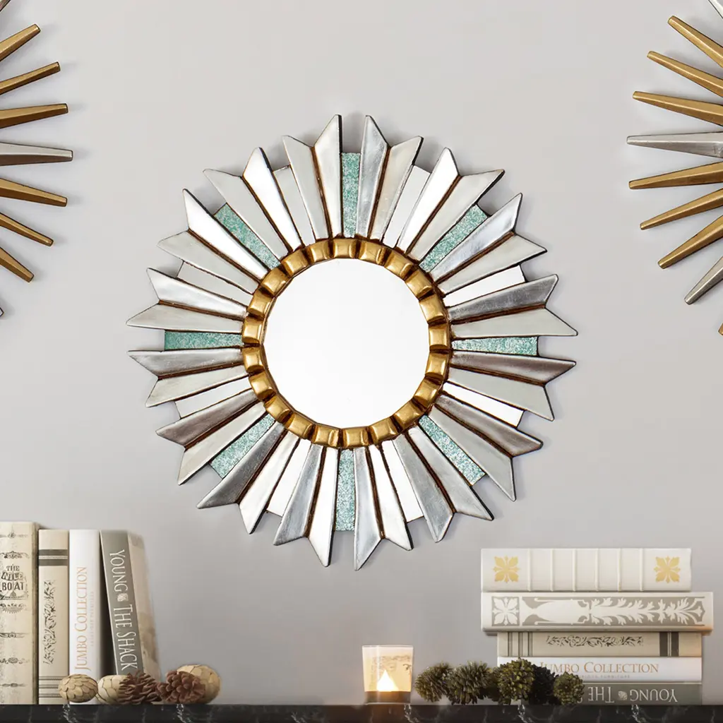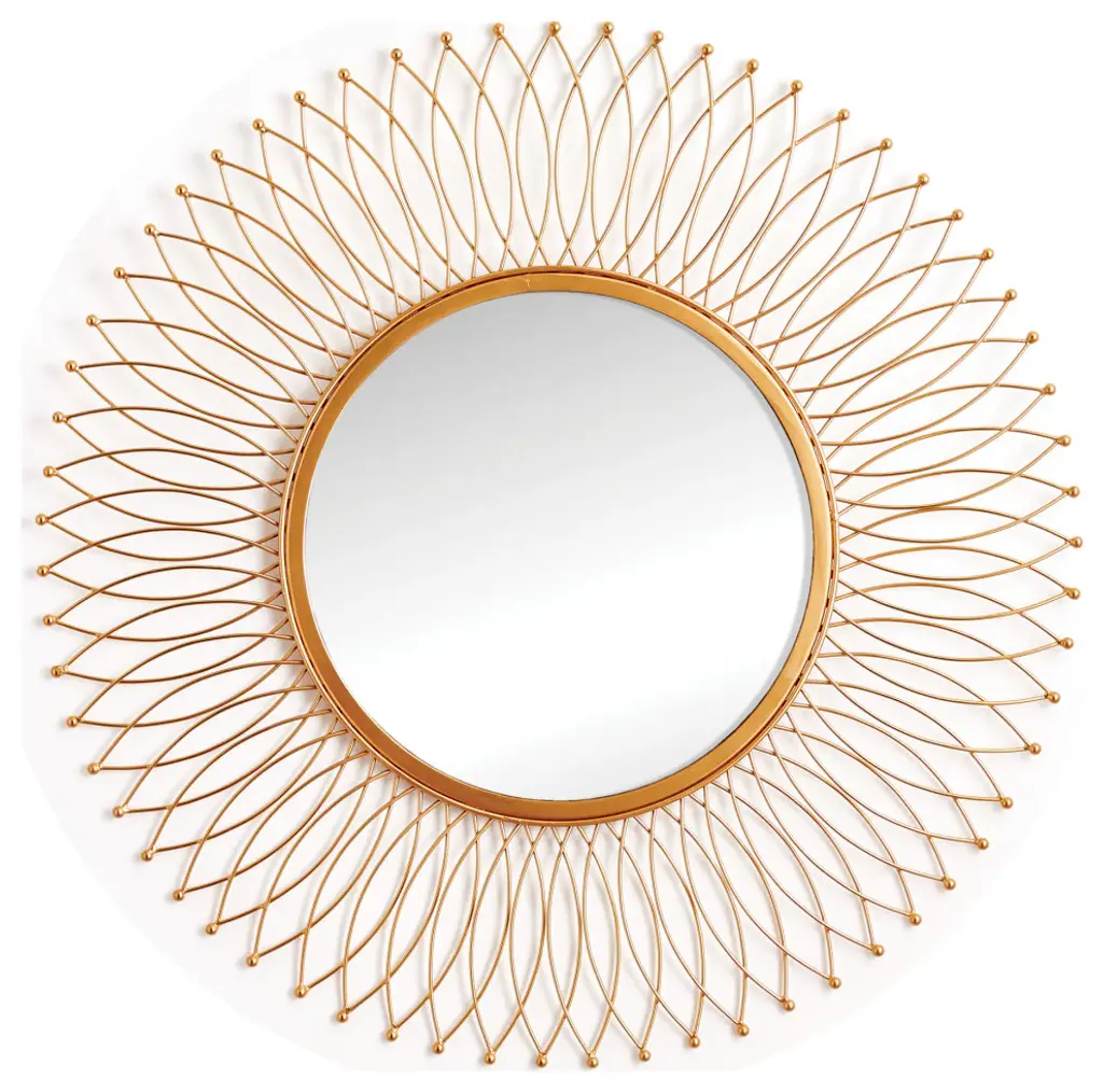 【Modern Geometric Style】This unique metal wall mirror is full of eye-catching appeal, showing an inspired sun design. With the embellishment of this wall mirror, the entire space becomes agile in an elegant and pleasant area. 【 High-Quality Material】This mirror is made of high-quality metal, which ensures long-term use. It can also be used as a housewarming gift, birthday gift, etc. to friends and relatives.