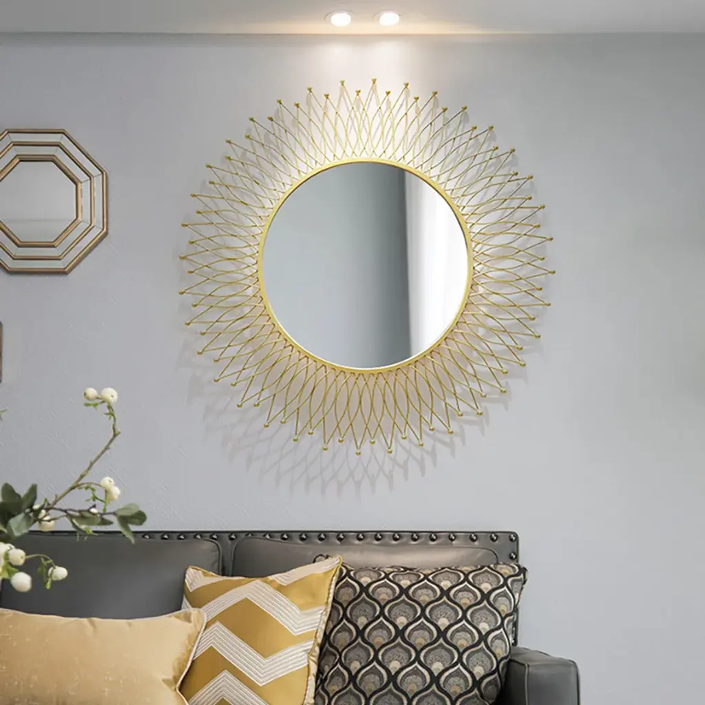 Modern & Luxury Round Gold Sun Metal Wall Mirror Decorative Art