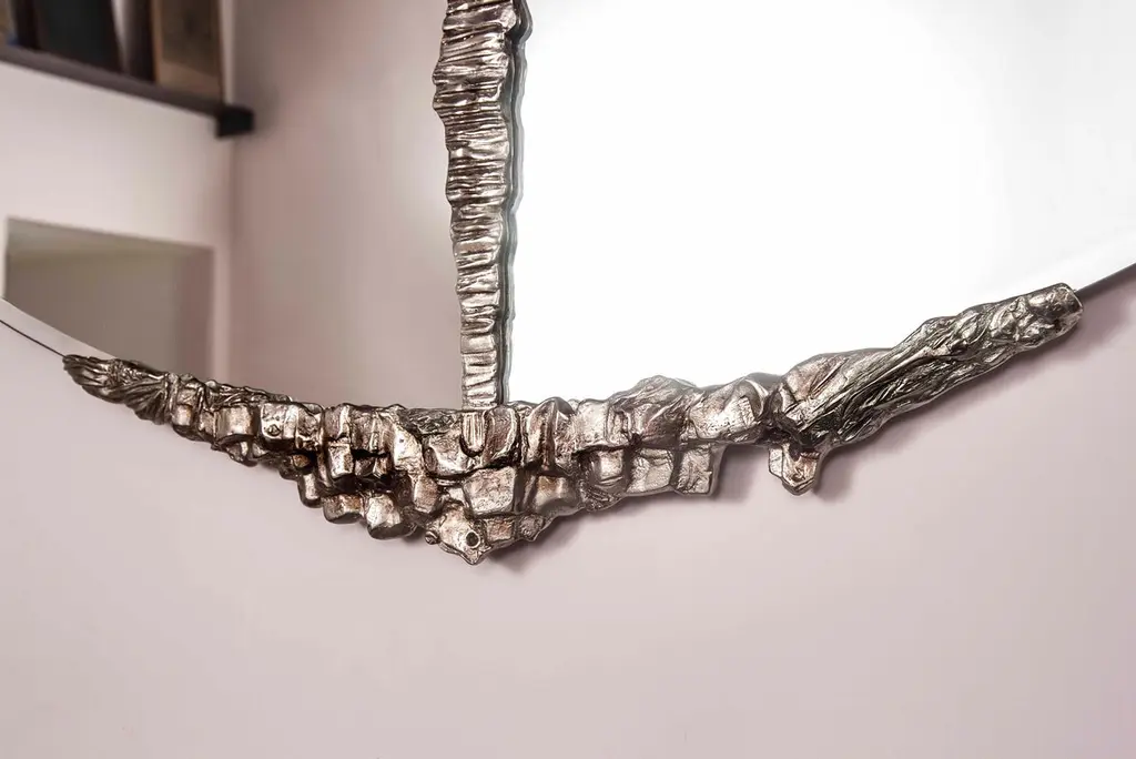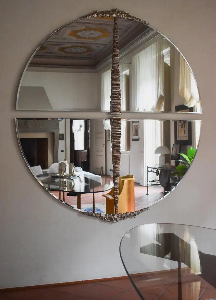 Modern Annibale Oste For Dilmos Round Mirror Chromed Bronze Cast