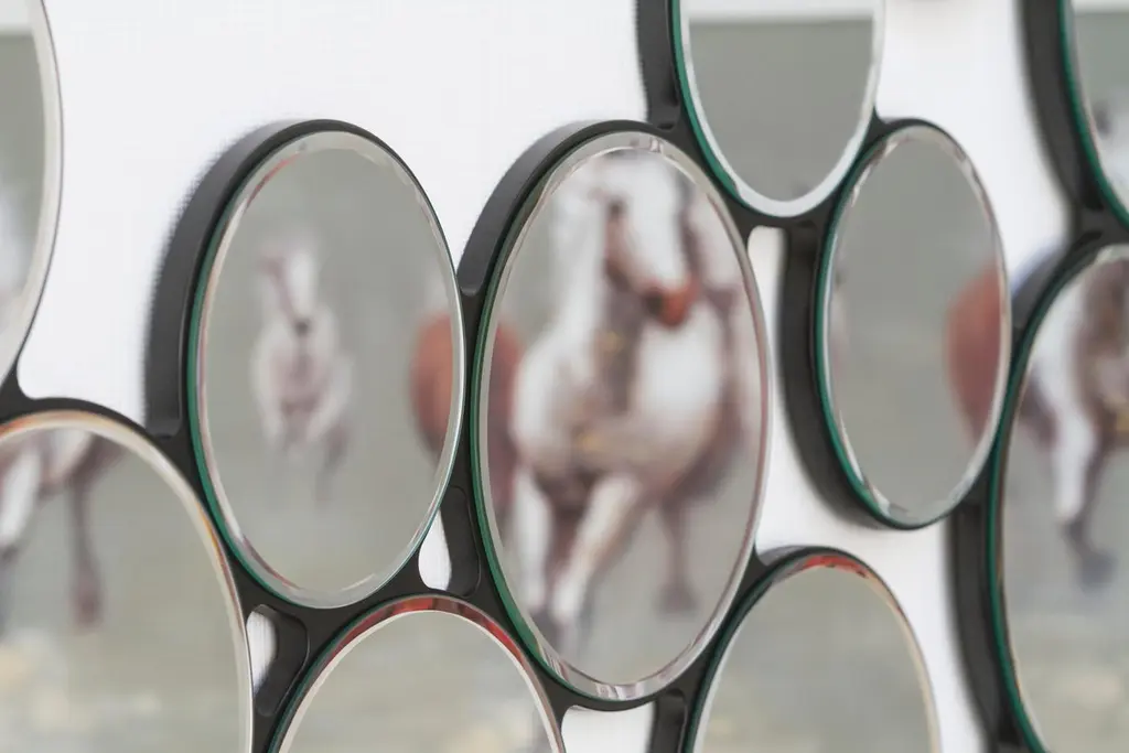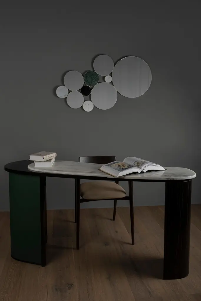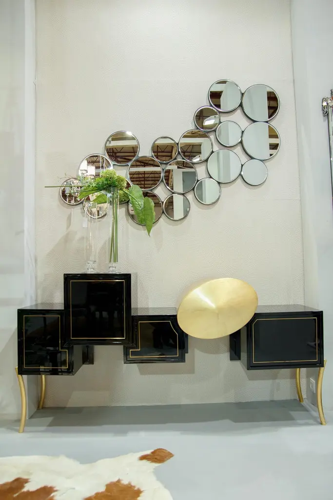 Modern Bubbles 19 Wall Mirror, Contemporary Collection, Handcrafted in Portugal - Europe by Greenapple.A stunning decorative wall mirror with wood base, lacquered in high gloss black combined with 19 round clear mirrors. It feels like shapes and colours are flying in the wind.Modern Bubbles 19 Wall Mirror Material CodesFI032 Black lacquer; high-gloss finishMI001 Clear crystal mirrorHandcrafted in Portugal - Europe by GreenappleUnique by design, Crafted by peopleFounded in 2005 by Sérgio Rebola and Rute Martins, Greenapple designs and produces in-house luxury furniture for exclusive customers worldwide.Our own in-house production facility allows us to be obsessed with detail, and gives us the freedom to dedicate ourselves to the most demanding tailor-made and customized work. As Rute designs all the unique pieces, Sérgio assures the high-quality standards through the whole process - from design to production; from production to your home. Fine craftsmanship, whether perfected by experienced hands or state-of-the-art machinery is quintessential in delivering top quality experiences.