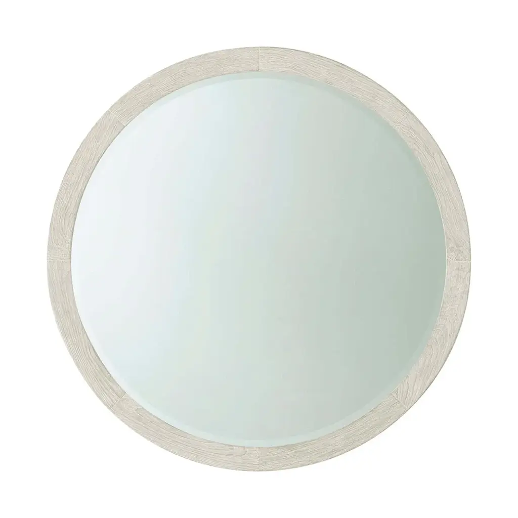Modern coastal round mirror, Inspired by an organically modern design, this round mirror is crafted from wire-brushed cerused pine wood in our new Sea Salt finish and offers a fresh take on a classic silhouette. Dimensions: 44" W x 1.5" D x 44" H