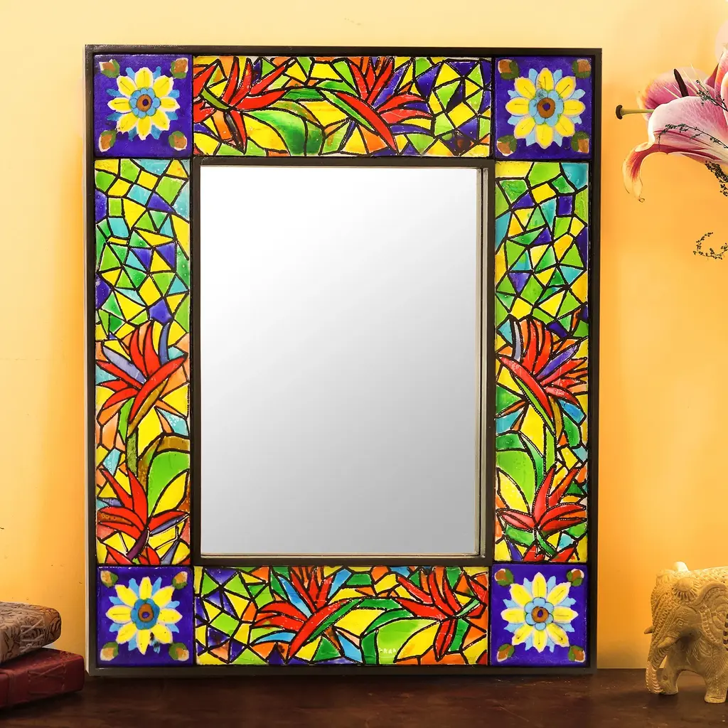 Modern Colorful Ipanema Blossom Mosiac Mirror By Ercole Home