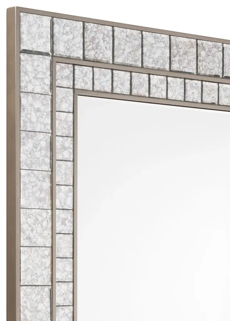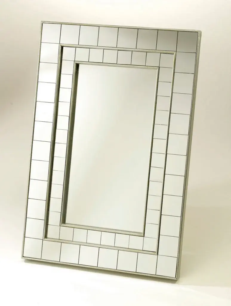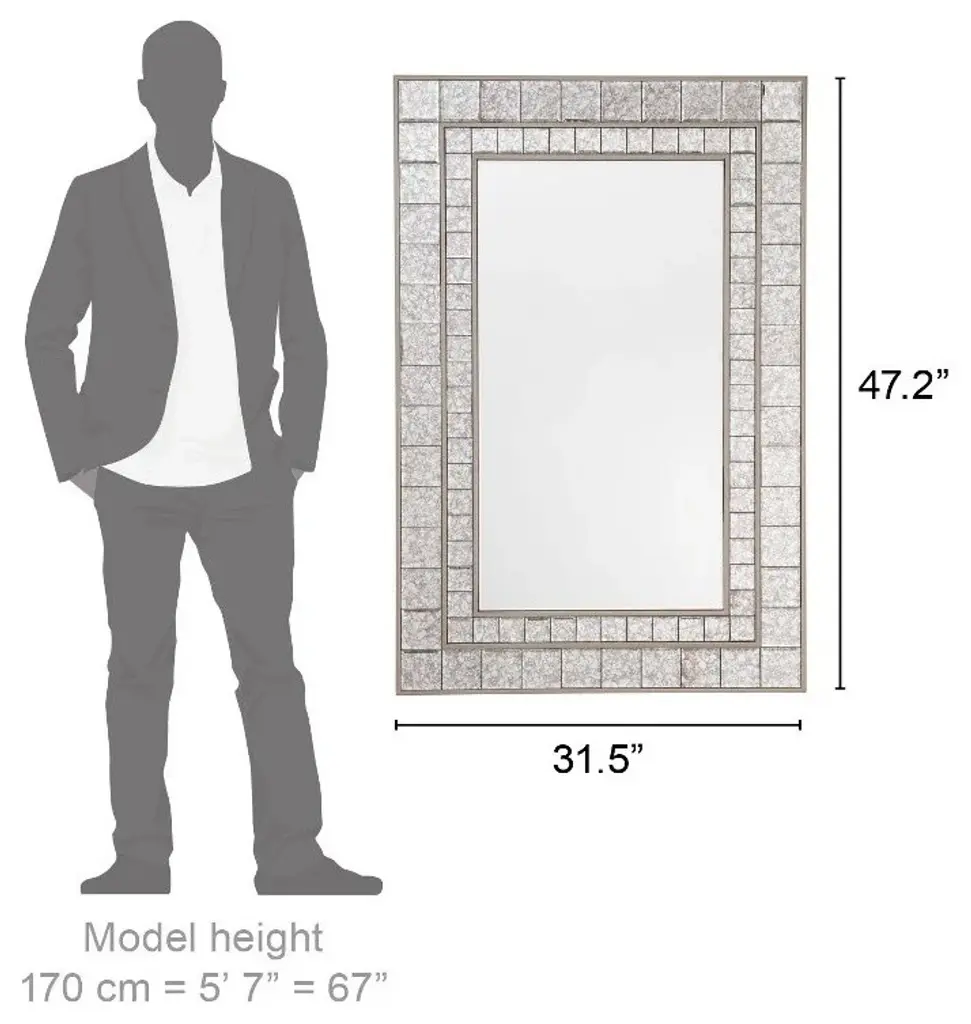 Beveled squares in antique mirrored glass outline this vintage modern mirror. Its large surface will add light and reflection to any room. We love it in an entry or dining room over a console table or above a mantle. Product Cover and Upholstery Material: Mirror Product Finish and Structure Materiel: MDFOverall Product Dimensions: 31.5 x 1.4 x 47.2 inchesWeight (lbs): 18