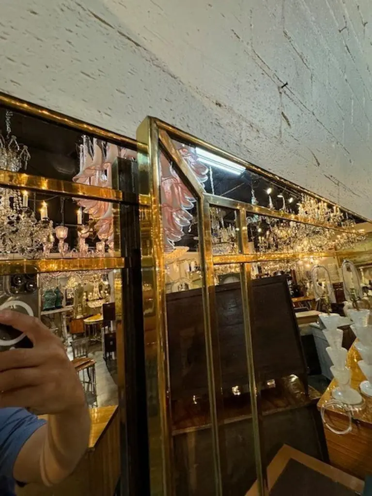 Lovely Italian designer brass mirror. Creates a very polished look! Very fine quality. There are 4 available.43w x 47h