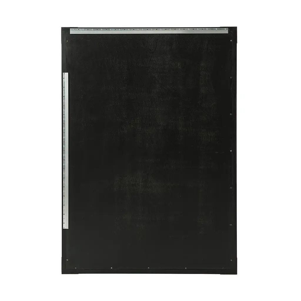 A large modern black lacquered and faux horn mirror, the rectangular top with brass edged corners, enclosing a bevelled edge plate. Dimensions: 38" W x 2" D x 54" H