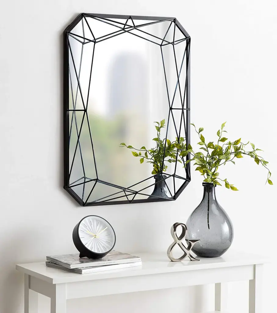 Modern Glam Geometric Shaped Metal Accent Wall Mirror, Black
