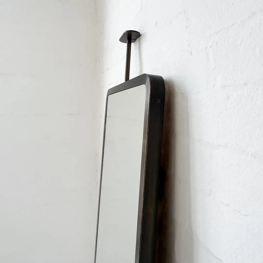 Modern Quadris Ceiling Suspended Long Rectangular Mirror, Bronze Patina Frame