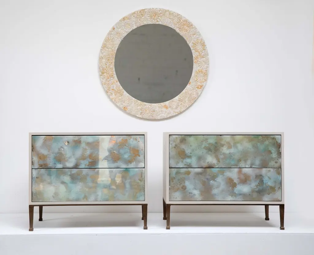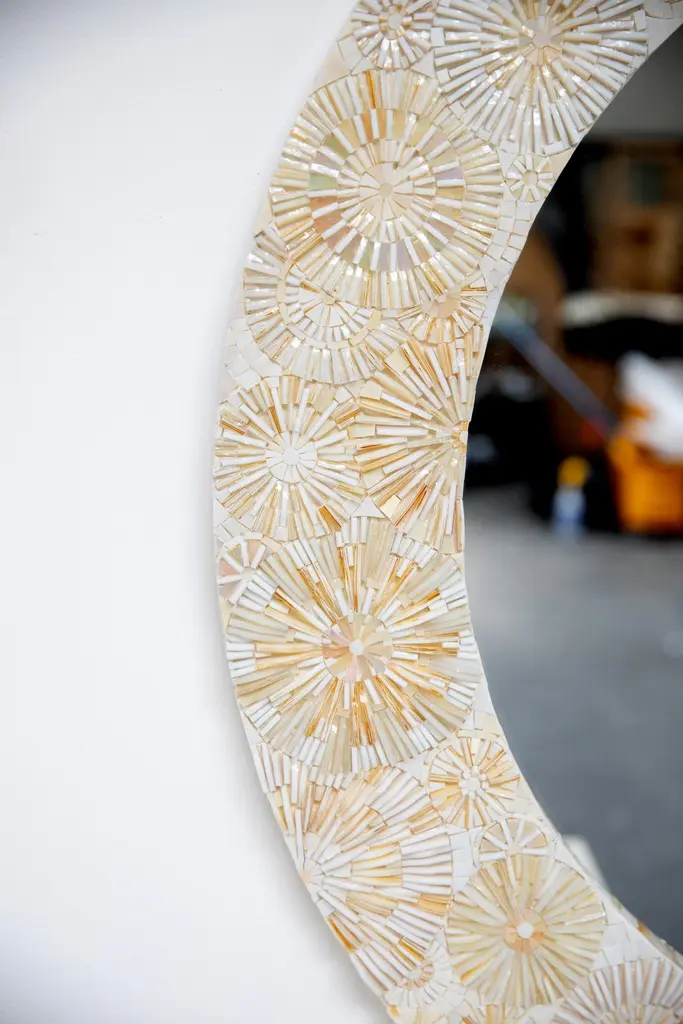 Modern Round Blossom Mosaic Mirror In Warm Ivories By Ercole Home