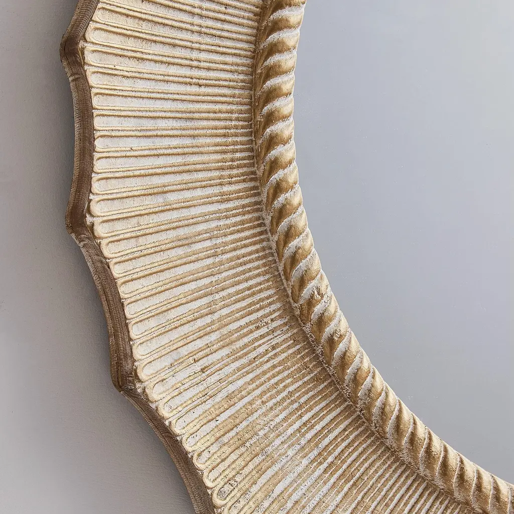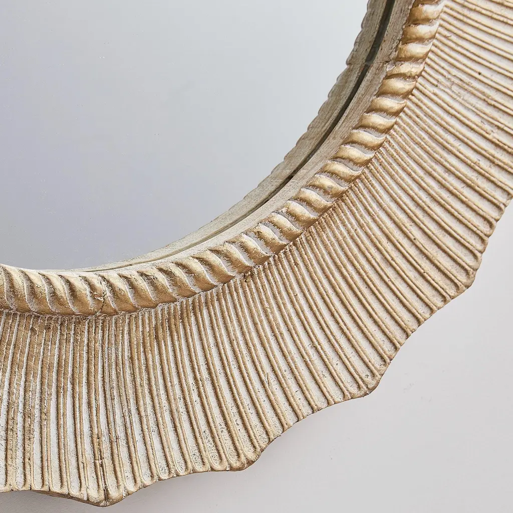 Display bold and functional decor for your walls while adding a sense of space to your home with this wall mirror. This product uses a wooden frame, similar to the sun frame design to add a retro atmosphere to your home.
