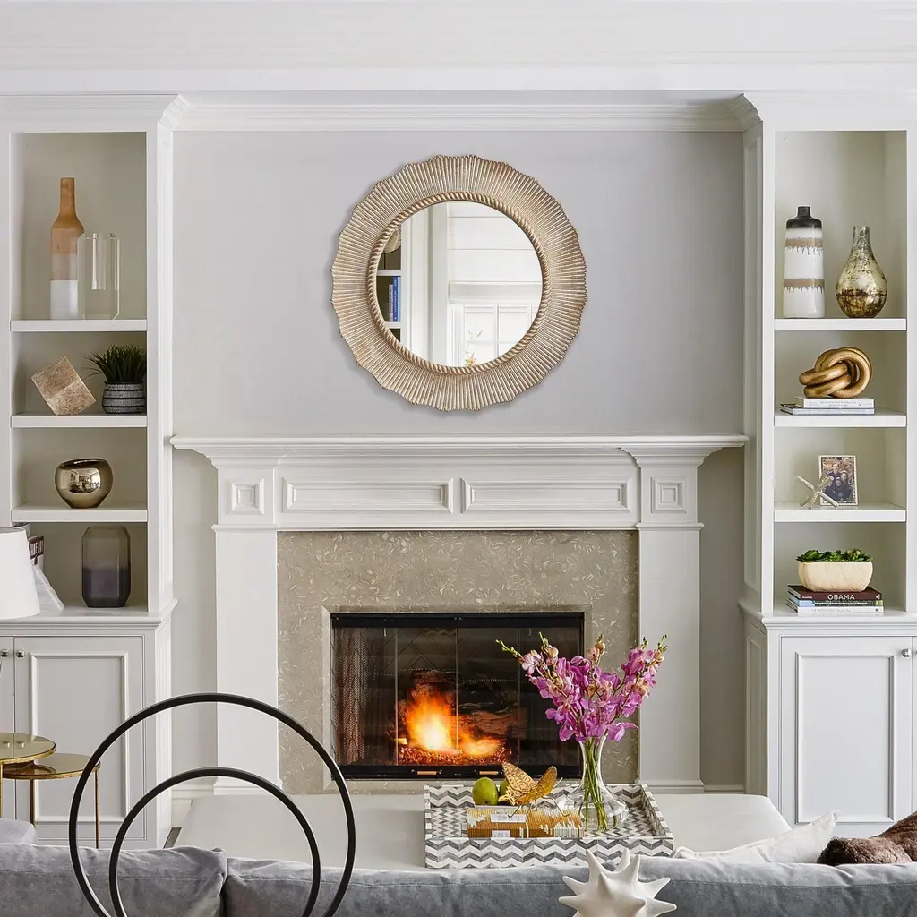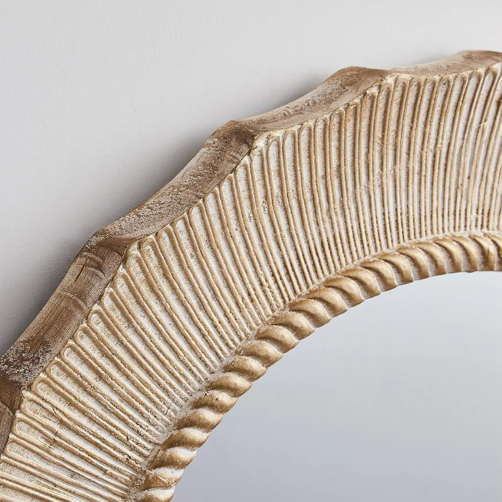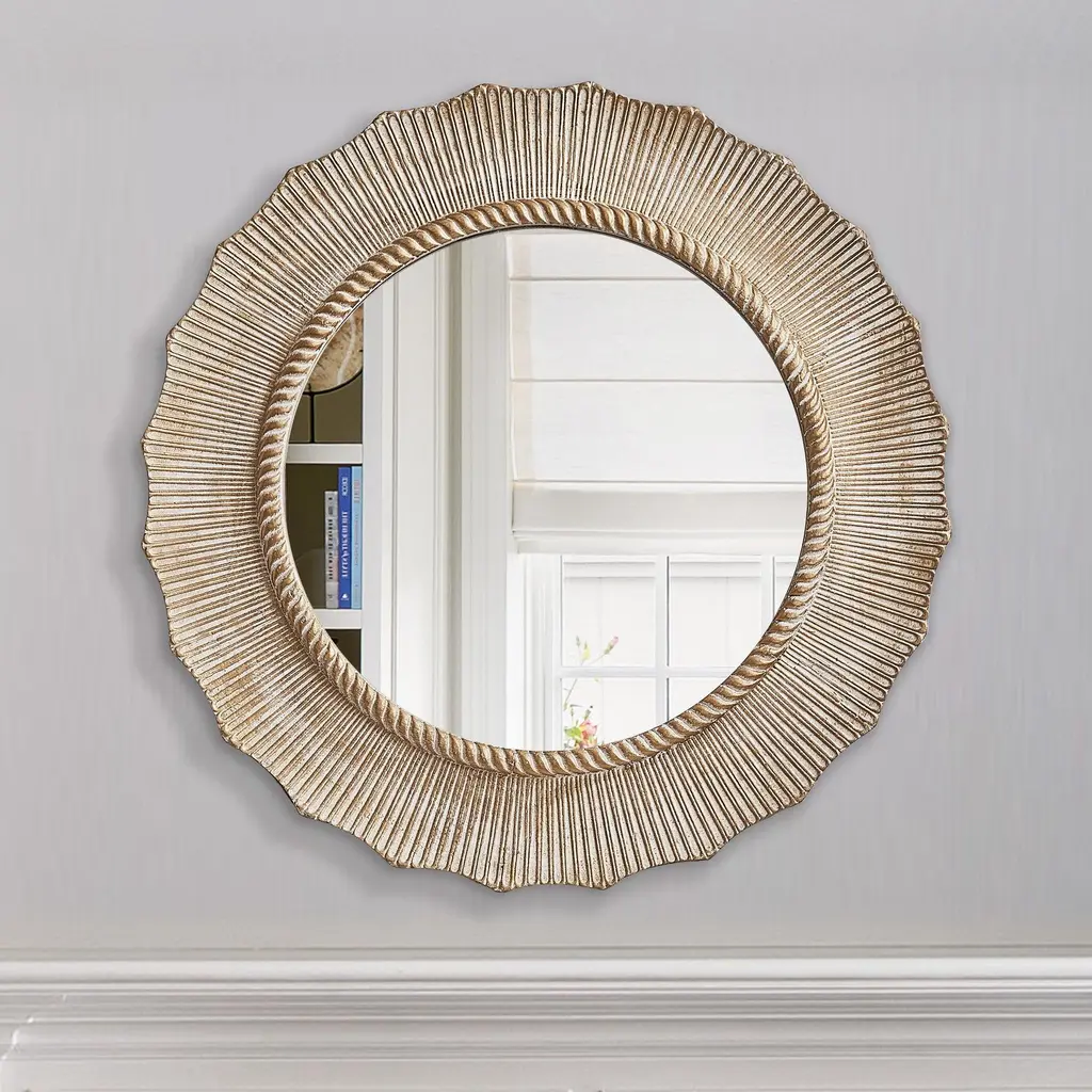 Modern Round Mirror Vintage Wall Decoration - Brown