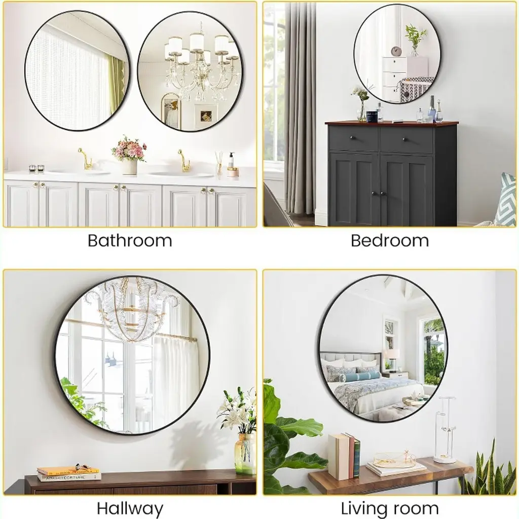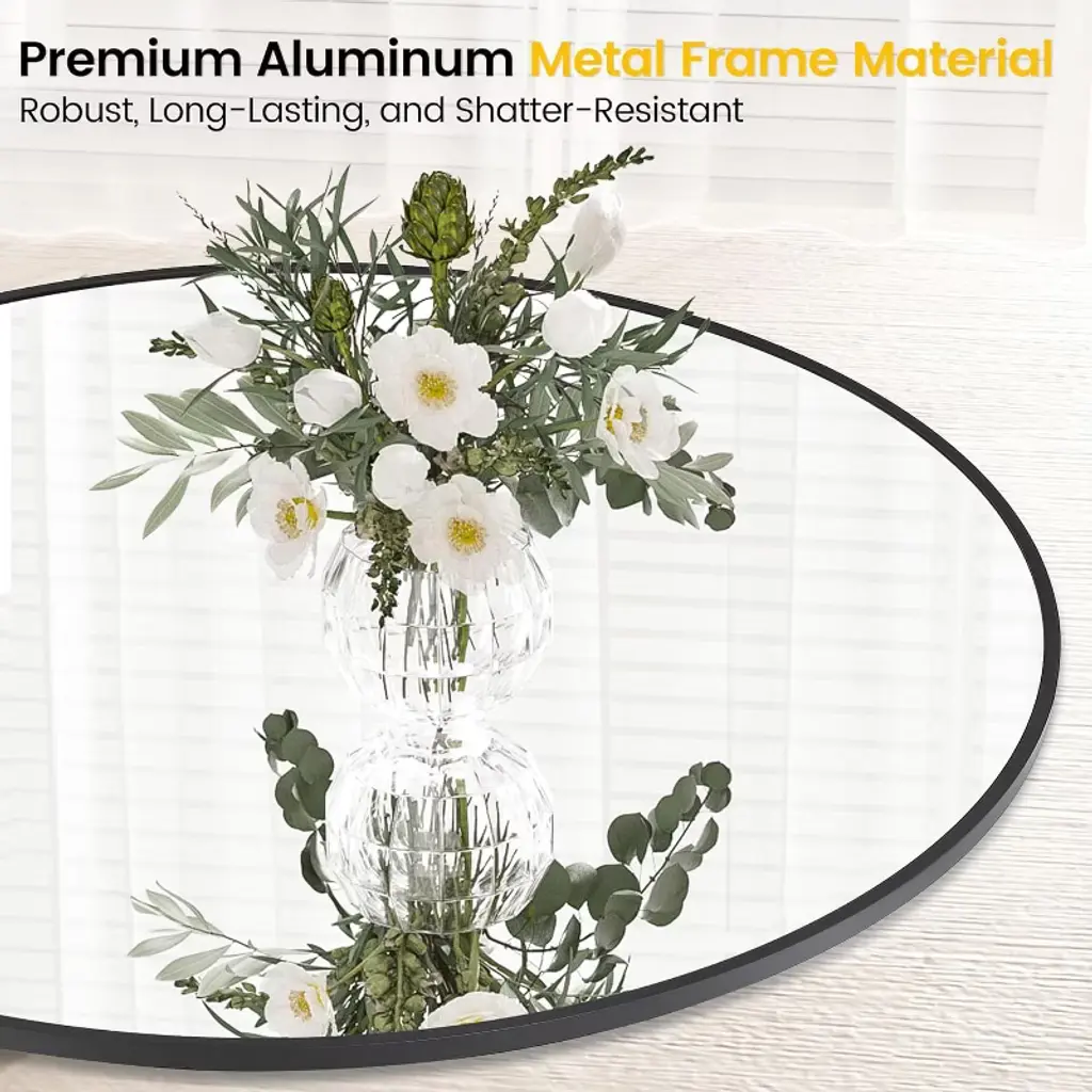 Modern Round Wall Mirror 32 Inch, Sleek Metal Frame Dressing Mirror, Minimalist Wrap Design Decorative Mirror for Bathroom, Vanity, Living Room, Entryway, Hallway, Easy Assembly, Black