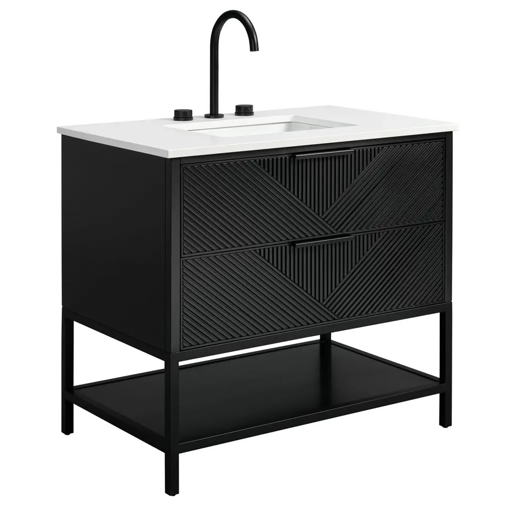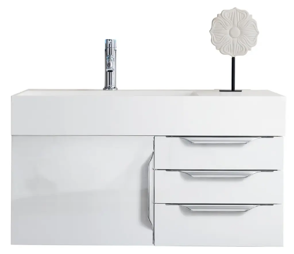 Modern Wall-Mounted Bathroom Vanity | Picasso White Matte 40"-No Mirror