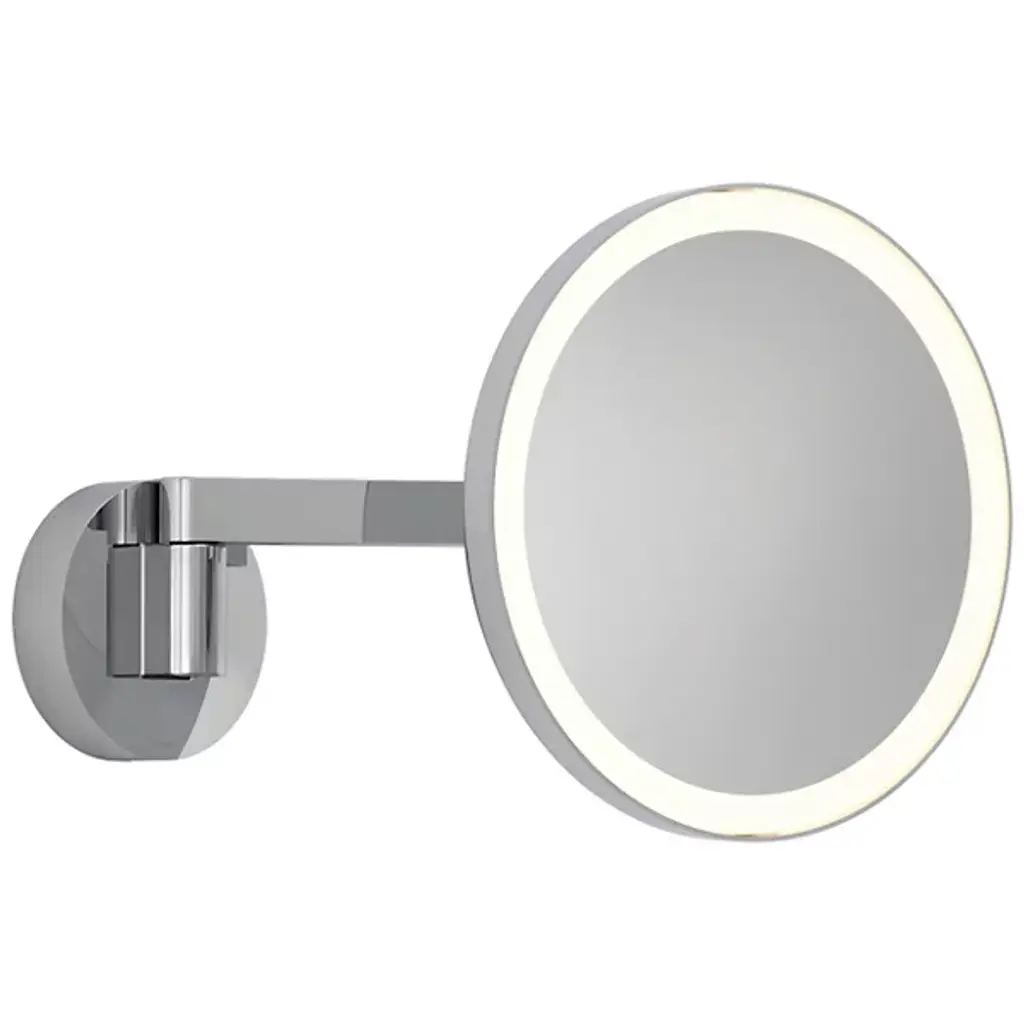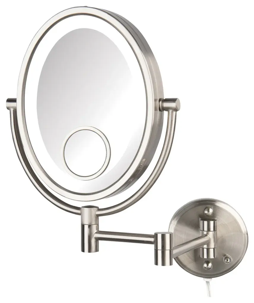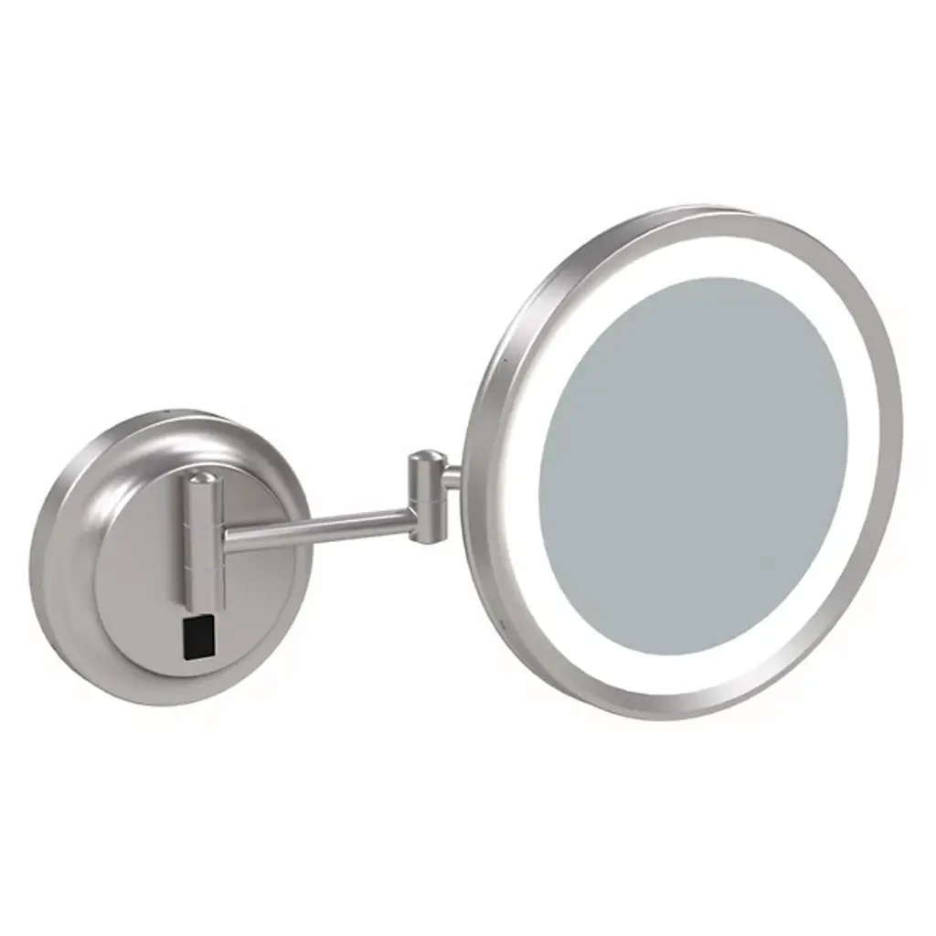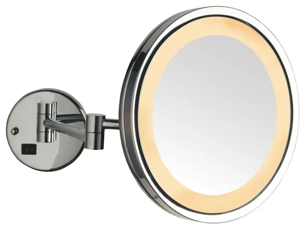 Perfect your mascara game with this Modern Wall Mounted Chrome Make-Up Mirror. This mirror provides five times magnification, allowing you to apply makeup with precision.Specifications: Lighted eight inch Diameter Wall Mounted Chrome Make-up Mirror five times Magnification
