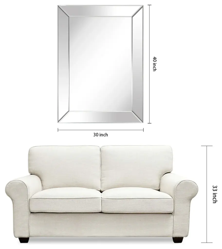 Moderno Beveled Rectangle Wall Mirror, 1"-Beveled Center Mirror, 40"x 30"