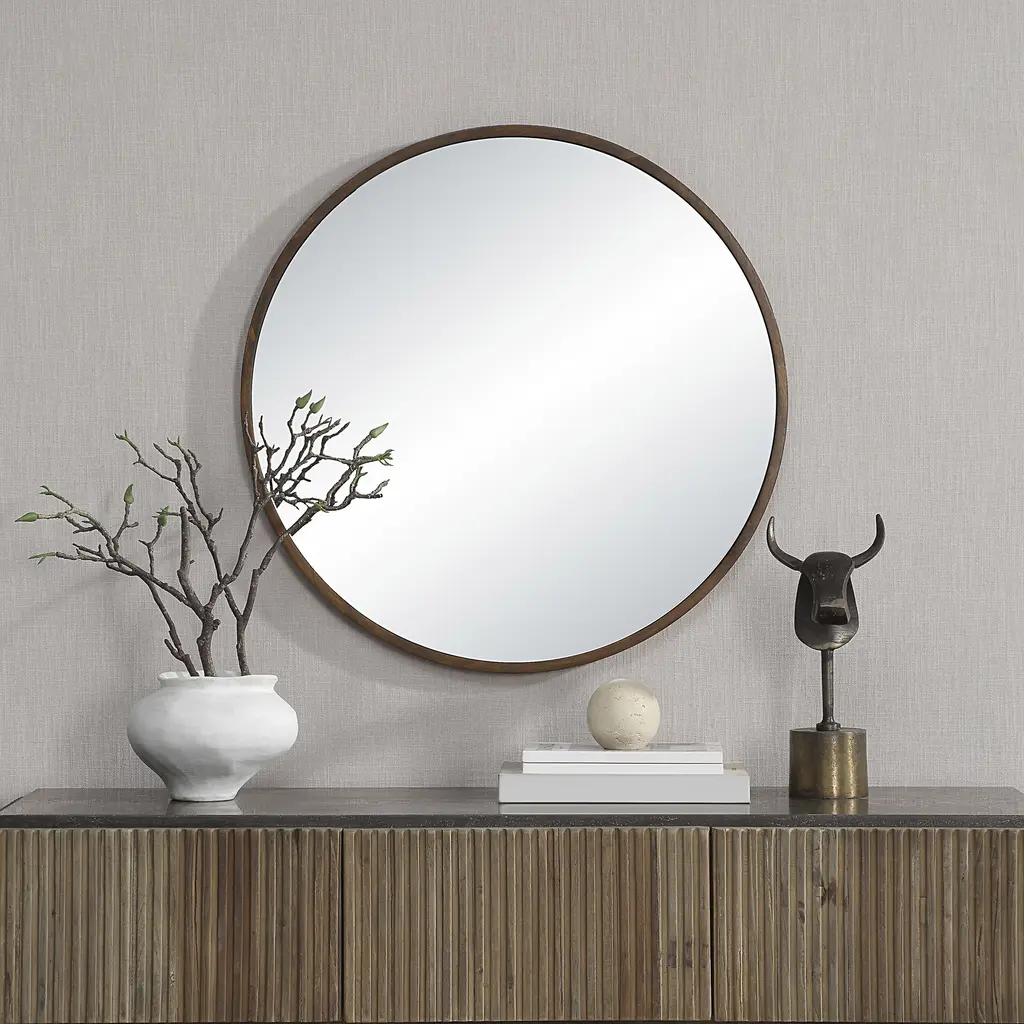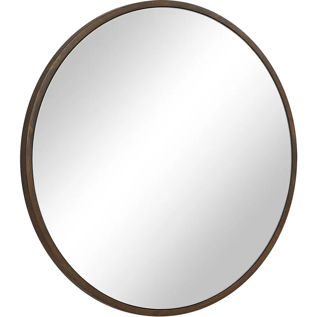If there was ever any doubt that the mid-century modern aesthetic is here to stay, this wall art mirror will make it very clear. Its painted walnut finish, versatile dimensions and simple design make it perfect for any number of settings. To elevate any home or office space, incorporate this great-looking round mirror in your decorating plan.