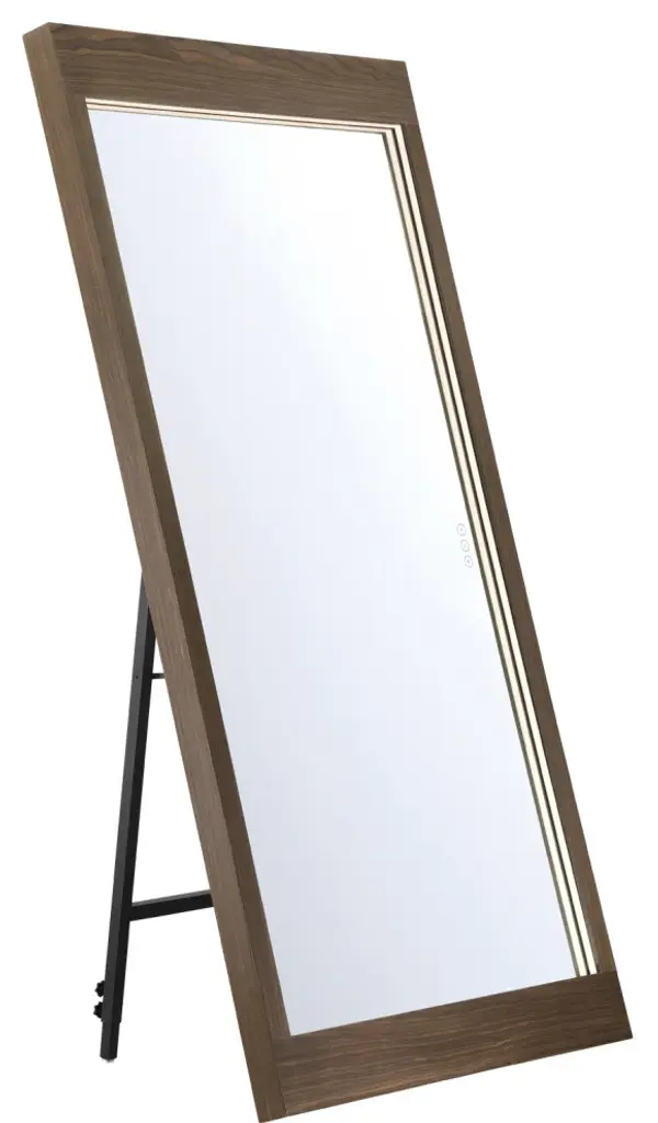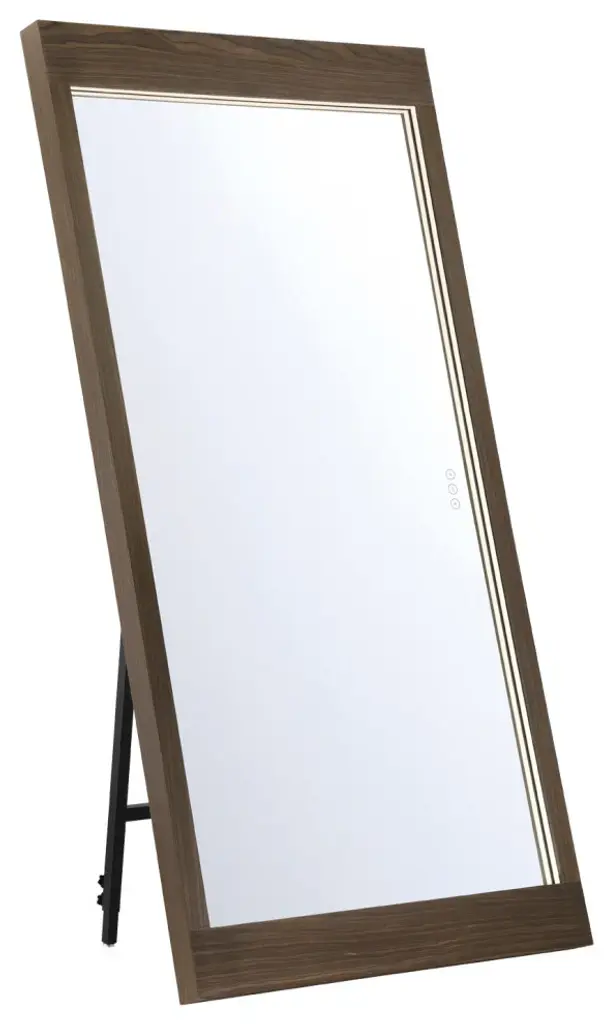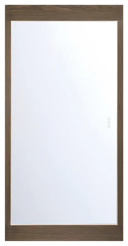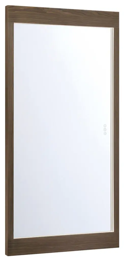 The Mogano Mirror (30" x 60") in Dark Walnut features a sleek rectangular design with integrated LED lighting, offering a modern and elegant touch to any room. Its matte accents complement the rich walnut finish, creating a sophisticated and contemporary look. Ideal for spaces like living rooms, bathrooms, or hallways, this hardwired LED mirror provides ambient lighting and a stylish focal point for your decor. This product is cETLus certified.- Built-in LED lighting for energy-efficient illumination, ideal for bathrooms and vanity areas.- Rated for damp locations (IP22), making it suitable for environments with higher humidity.- Transitional design with a dark walnut wood frame, adding warmth and sophistication to various decor styles.- Touch sensor for easy operation of the lighting, eliminating the need for mechanical switches.