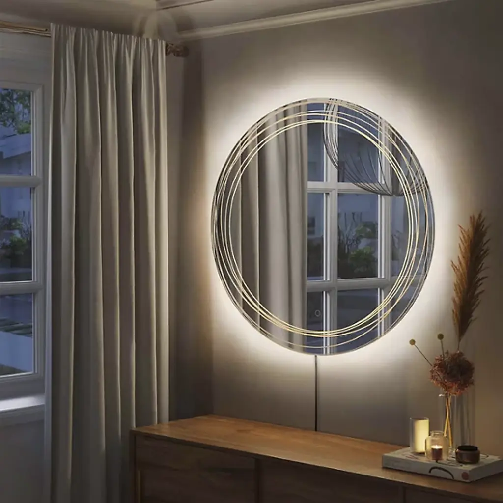 A functional work of art, beaming back a beautiful reflection. Frame your beautiful features with the lit contours of the Mojave LED Mirror from Nova of California. It’s a fitting piece for the modern home, drawing a clean circular shape on the wall. The pure geometry of the structure is softened by the gestural, concentric shapes moving around the edges. The gestural contours serve as a pass-through for a seductive LED light. You can tailor the light with easy to use touch dimmer switch on the front. The mirror offers crisp optics for a clear reflection.