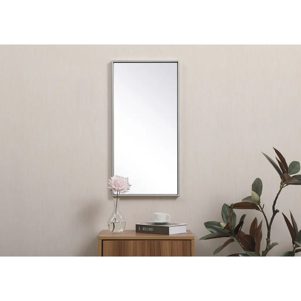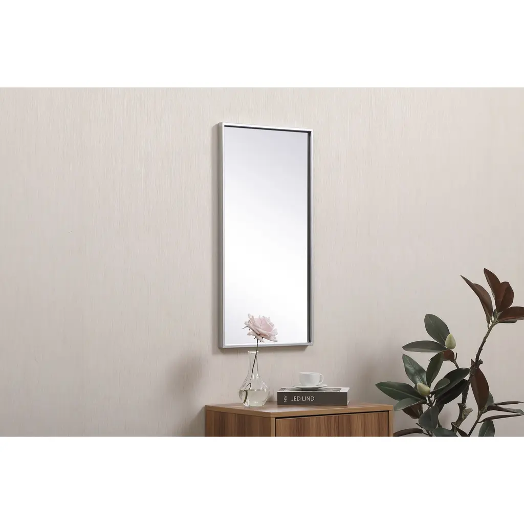 Enhance the appeal of your home or office with this contemporary mirror in silver finish, slightly antiqued, featuring a thin rounded metal edges in a deep profile, reflecting a minimalist's design and trendy styling. To ensure your home safety, we use a metal hanger ring that are securely welded to the back of the metal frame , which sit on top of the frame for easy hanging. We recommend using suitable heavy duty picture/mirror hooks, selecting the best type of fixing for the particular wall you wish to hang the mirror on, using the appropriate rawl plug if required. Measurement: D42.