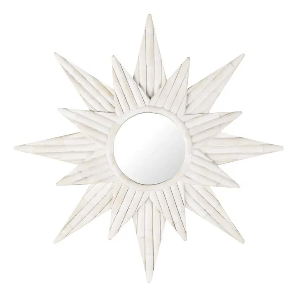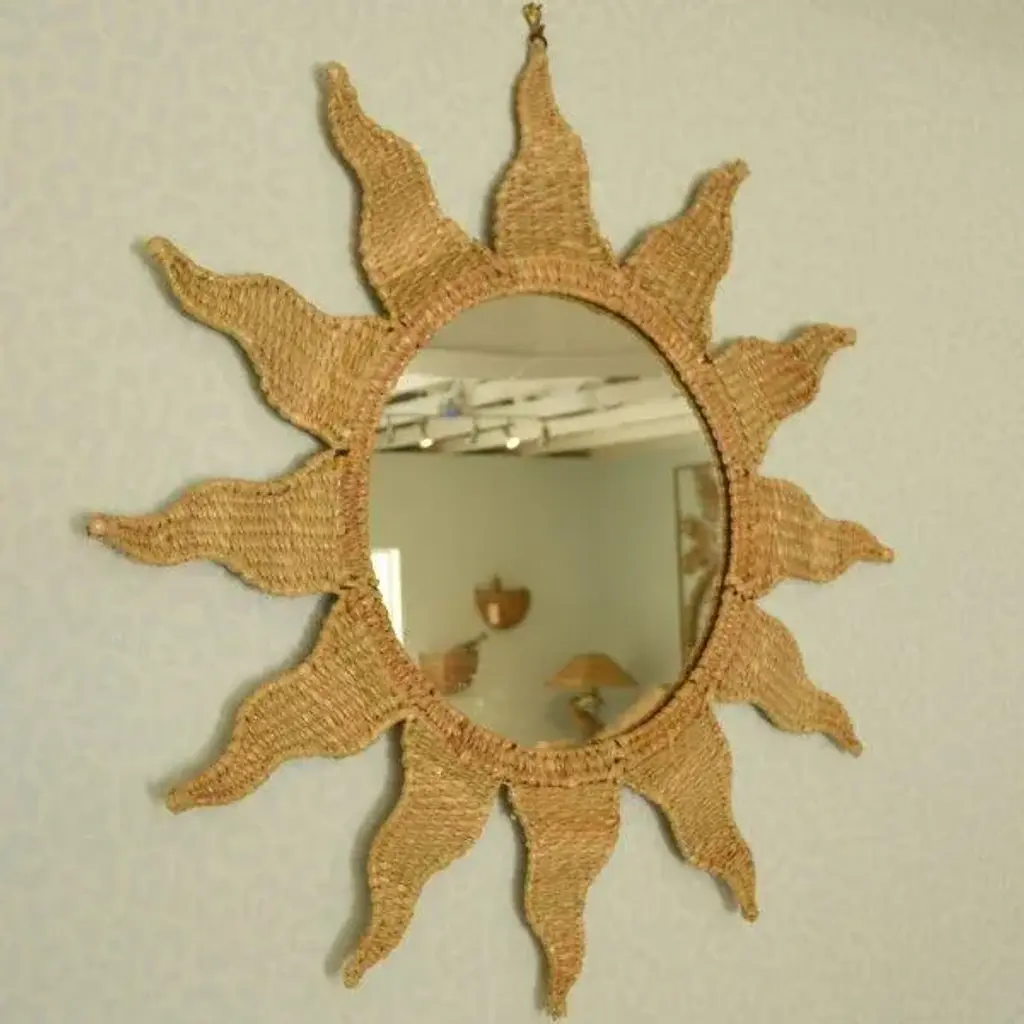 Sun Burst Mirror by Mario Lopez Torres. There are minor imperfections to the hand-made woven rattan. Signed Mario Lopez Torres Est. 1974. (see photos)