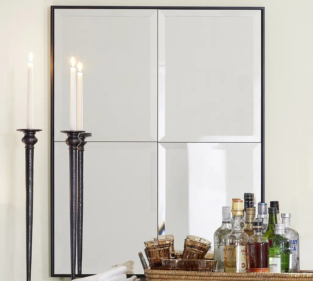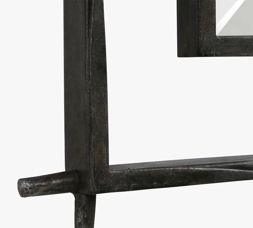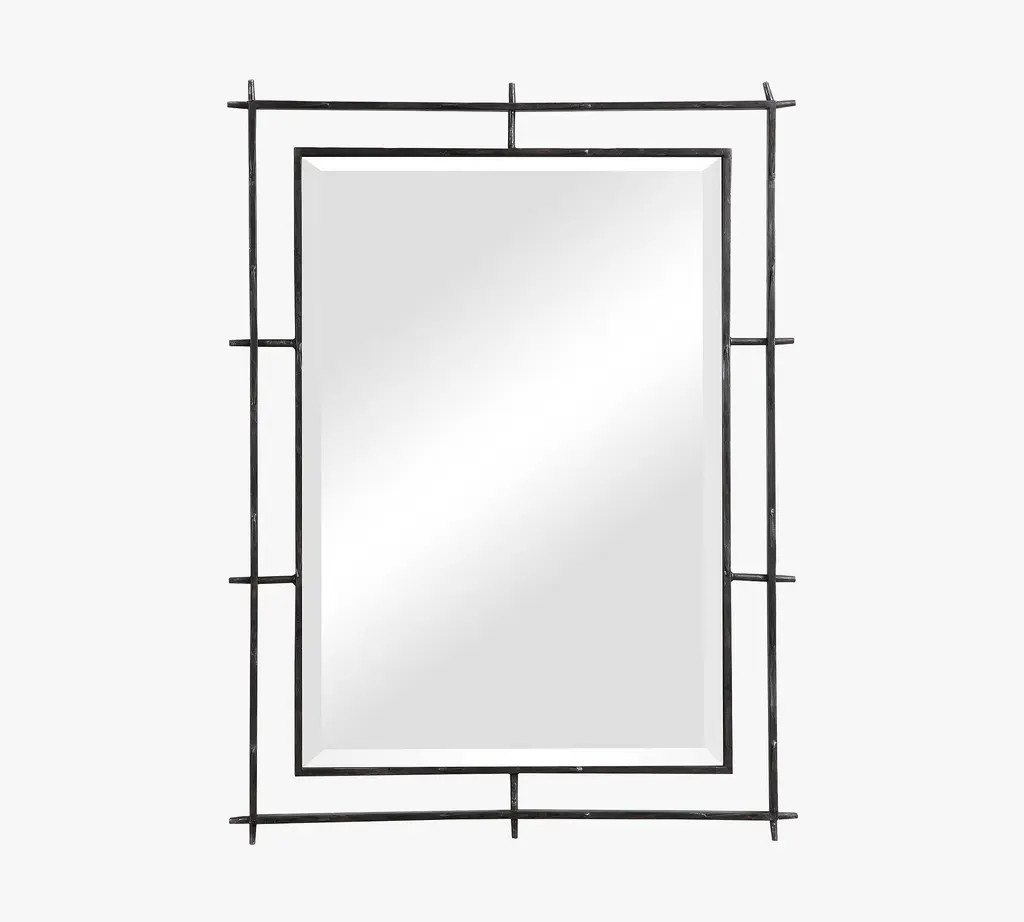 Delicate ironwork encompasses a beveled mirror in this simple and sleek accent. The frame-free design is open and airy, amplifying the way mirrors instantly add light and make a room feel bigger.