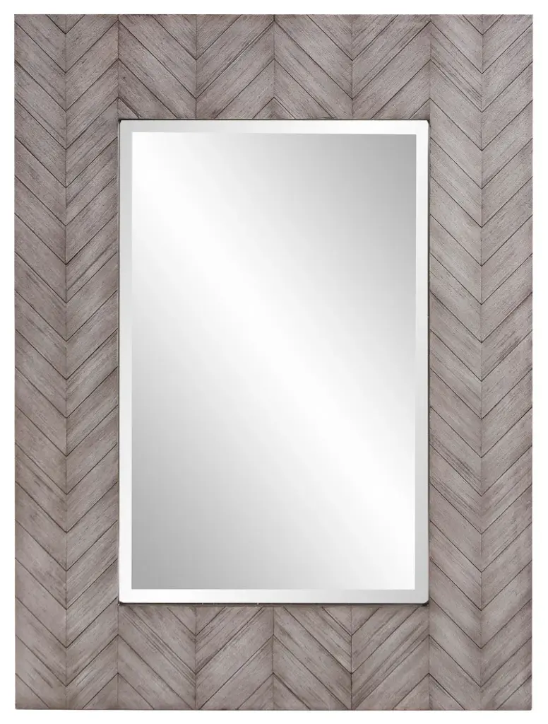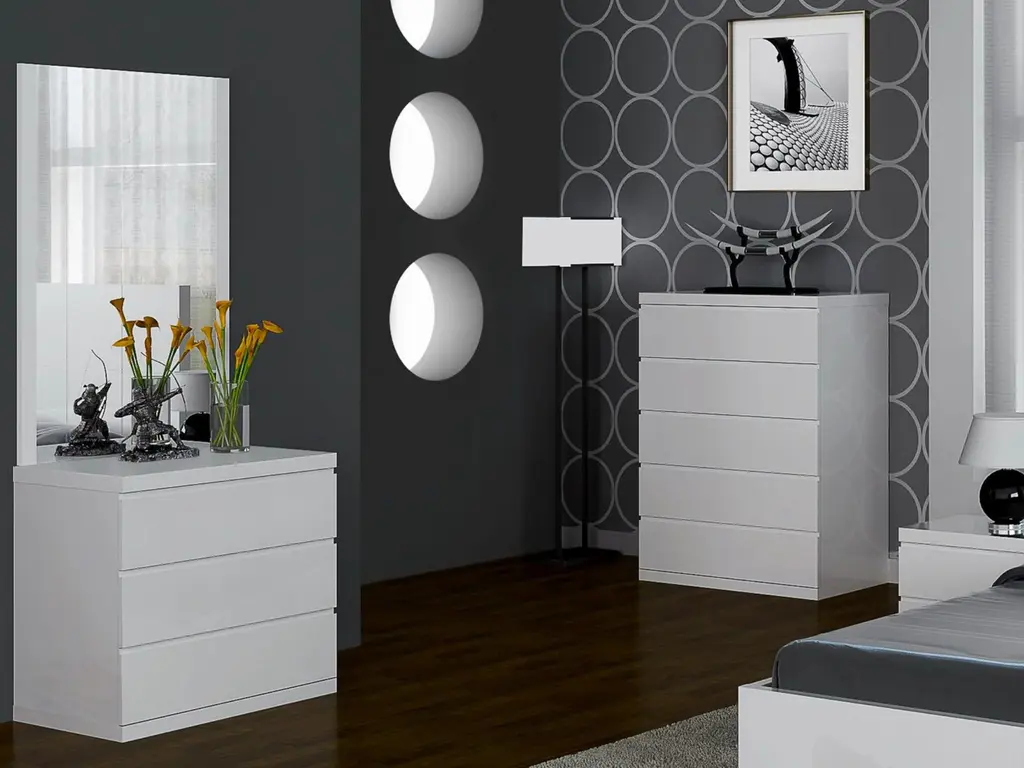 High gloss white or light grey. The mirror can be placed vertically or horizontally and can be used with a dresser or as a wall mirror.