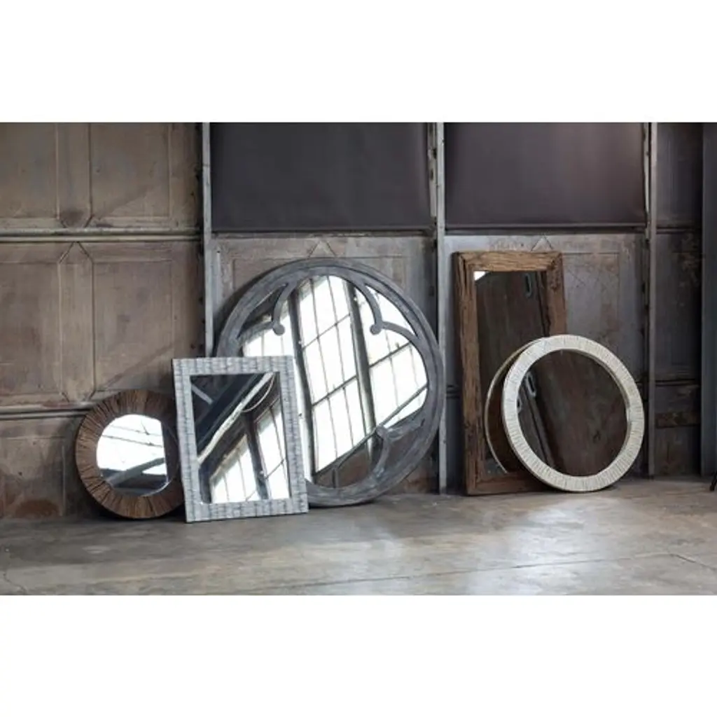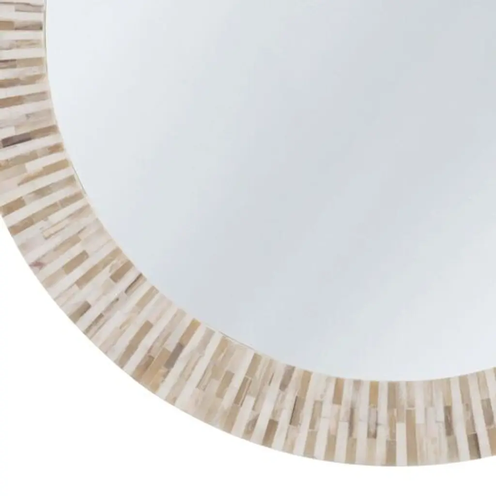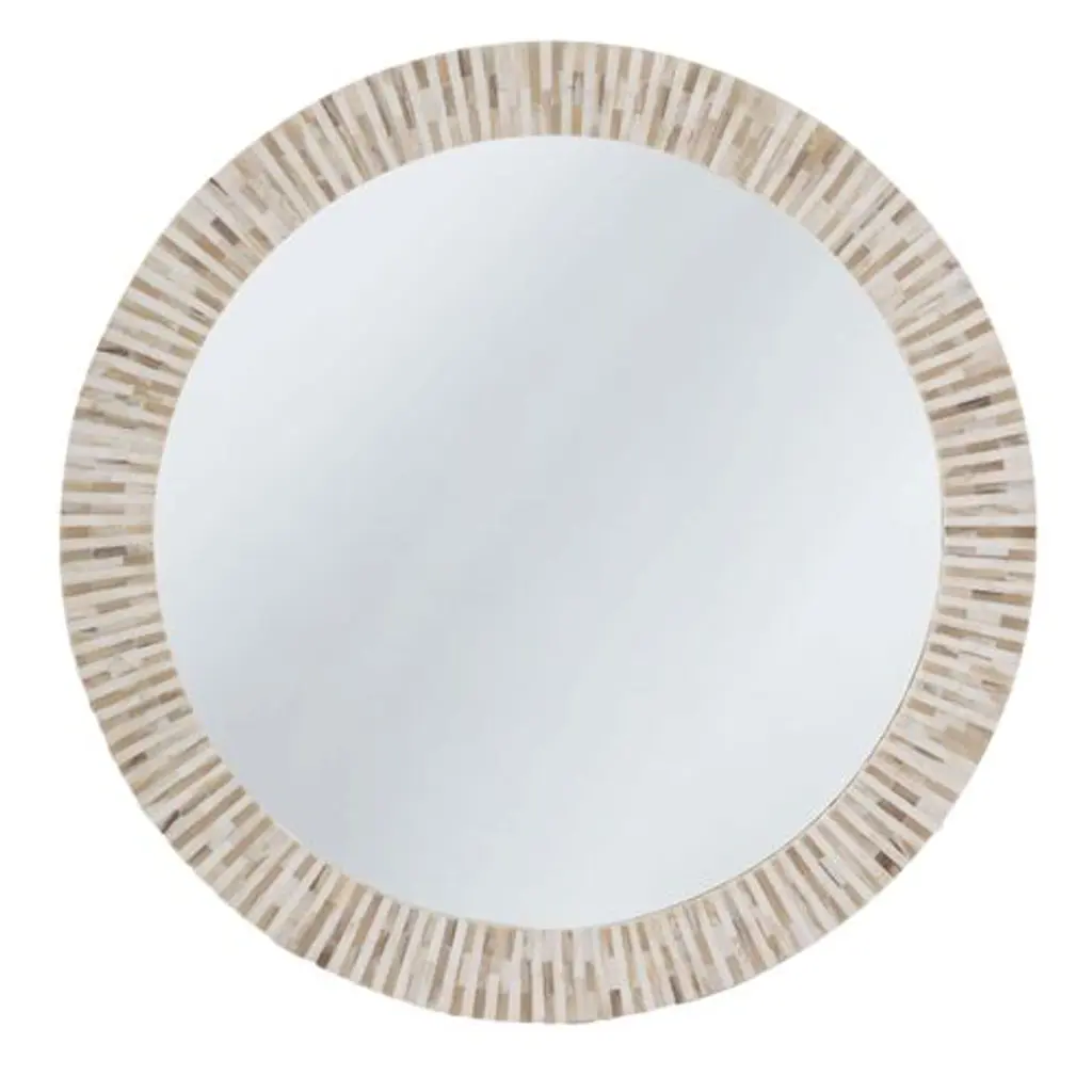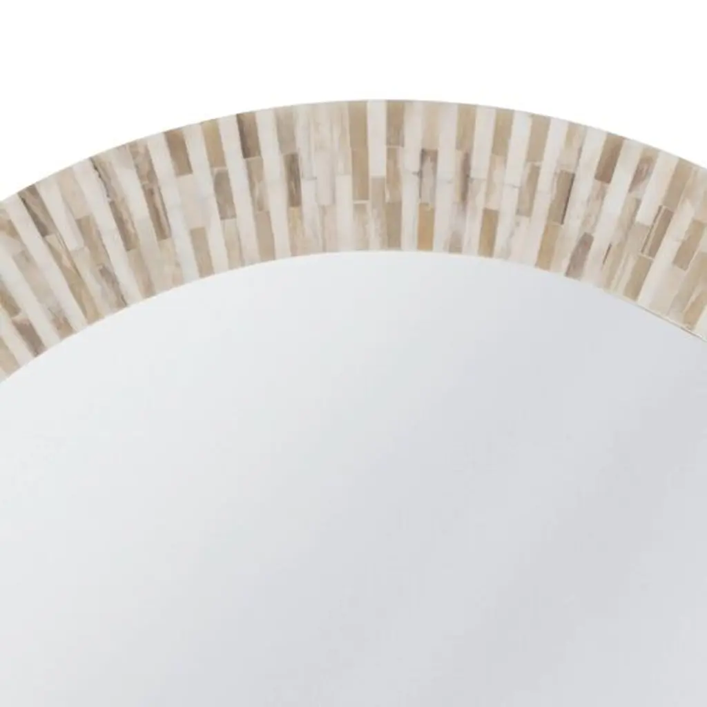 Inlaid with natural bone tiles, this round mirror imbues its surroundings with organic elegance.