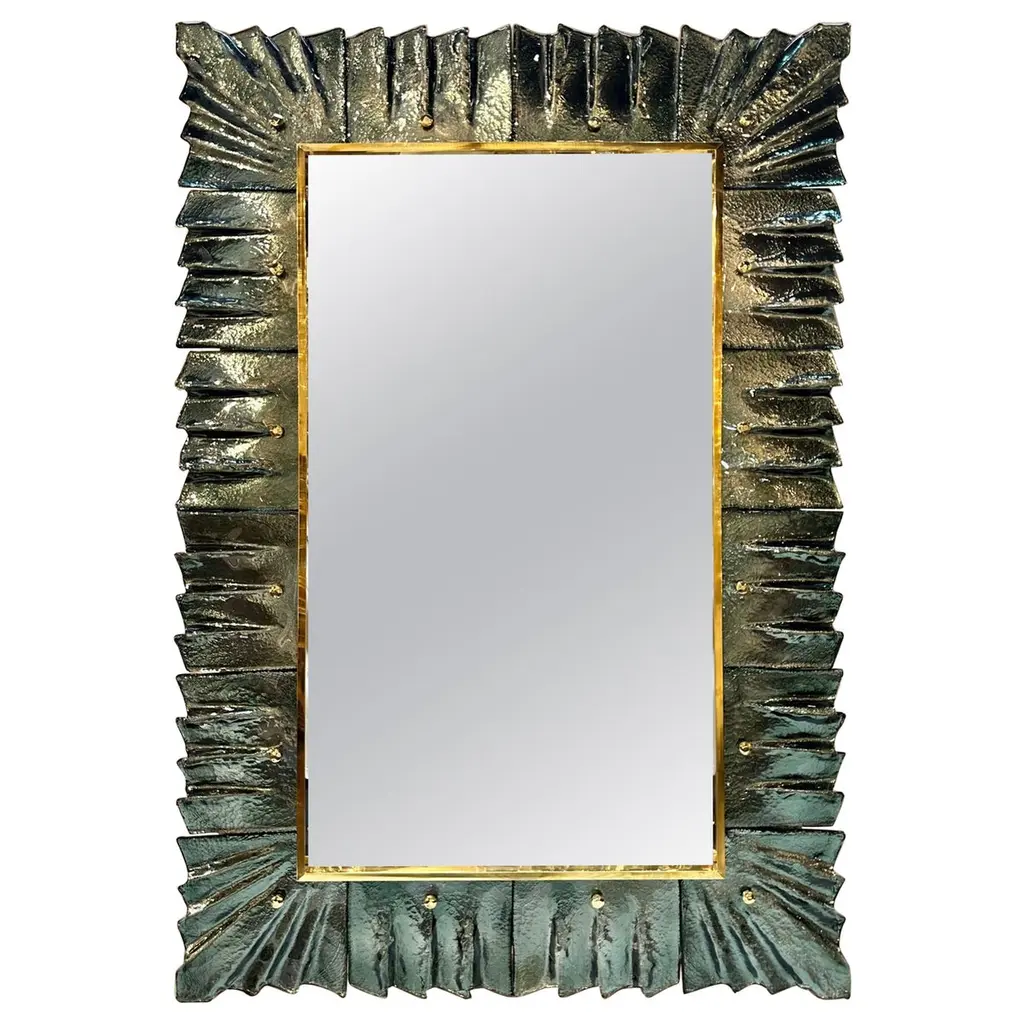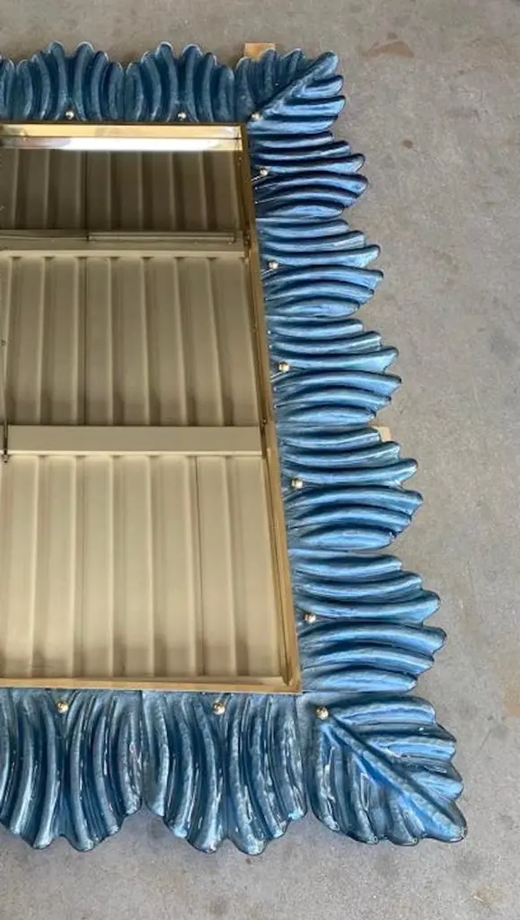 Murano Blu Color Glass And Brass Mid-Century Console / Wall Mirror, 2020