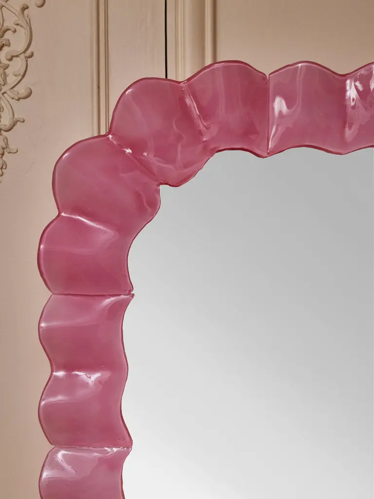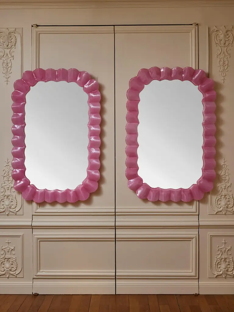 Pair of mirrors with frame in pink Murano glass.Creation by Studio Glustin.Italy, 2023.