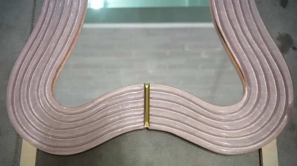 Murano Pink Glass And Brass Console Wall Mirror, 1990