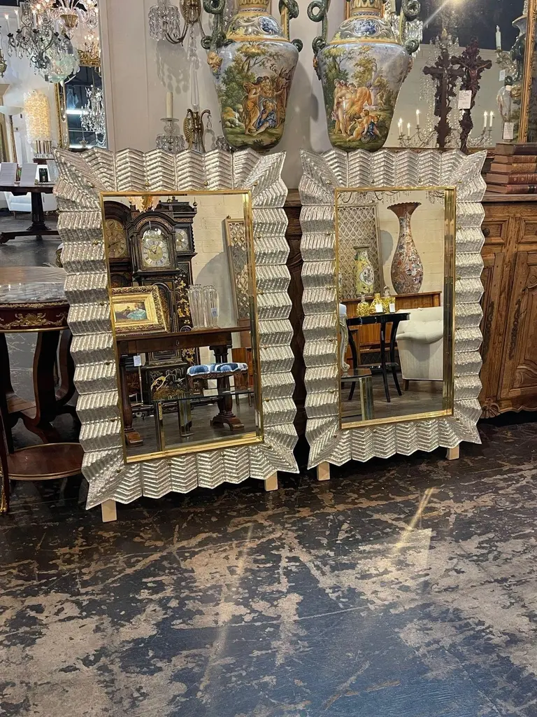 Fabulous modern Murano glass and brass "zig-zag" mirrors. Circa 2000. Perfect for today's transitional designs!
