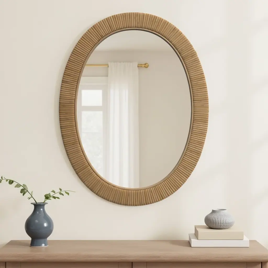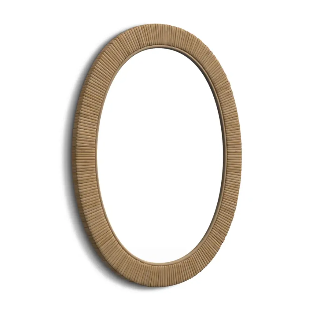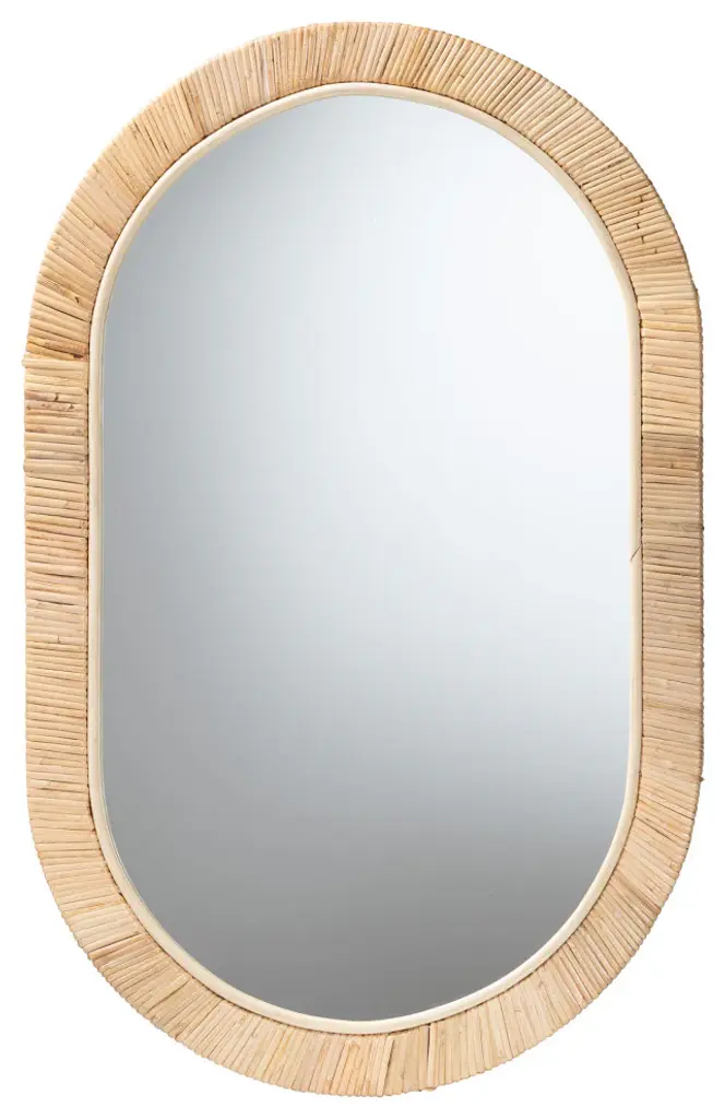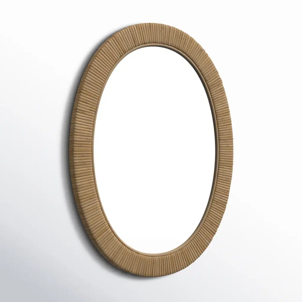 Reflect your own paradise with this lovely, tropically inspired wall mirror. Place in an entry or over a console or buffet to bring the vacation vibes home. Bonus, the frame is wrapped in natural, sustainably grown rattan, for a look that is both easy on the eyes and the environment!
