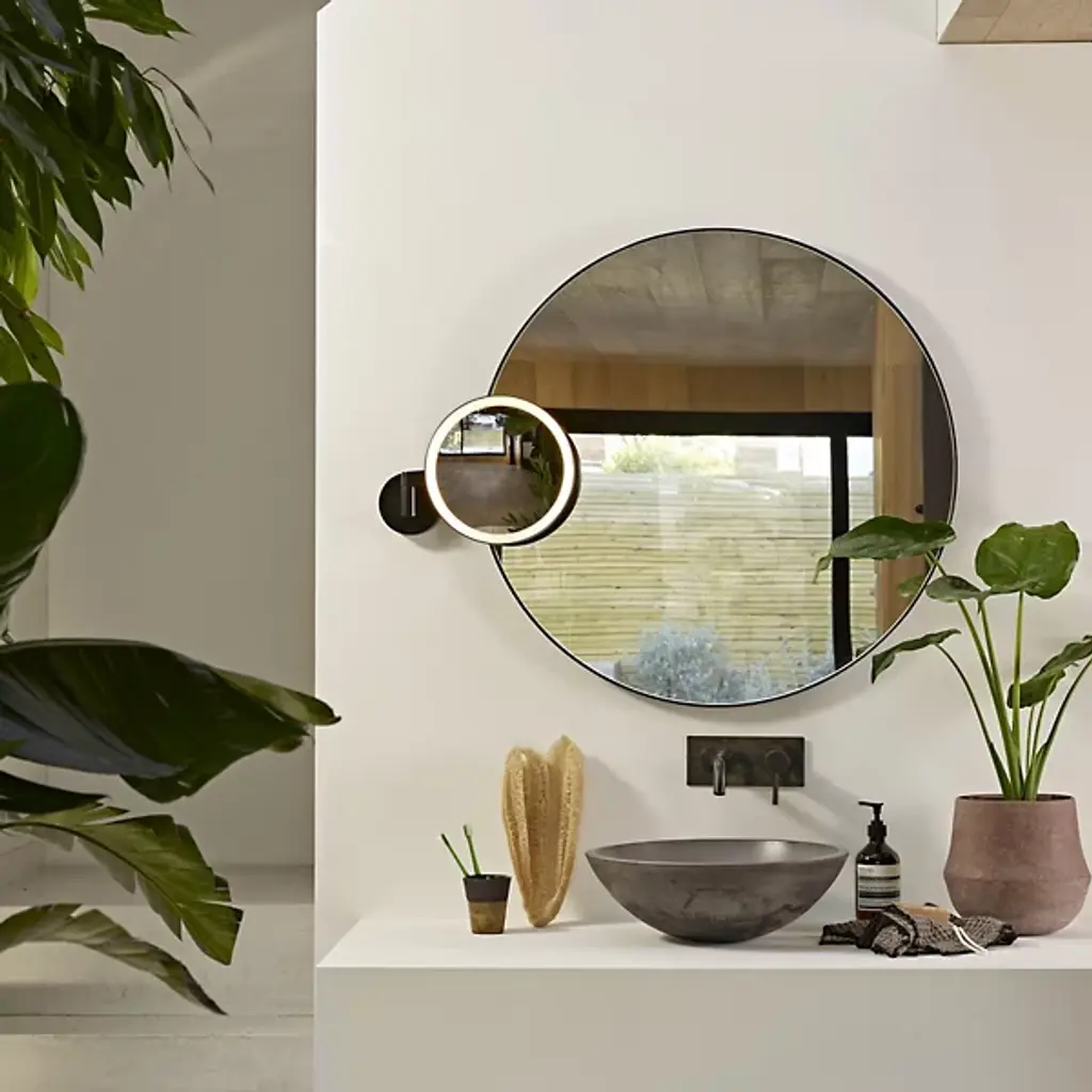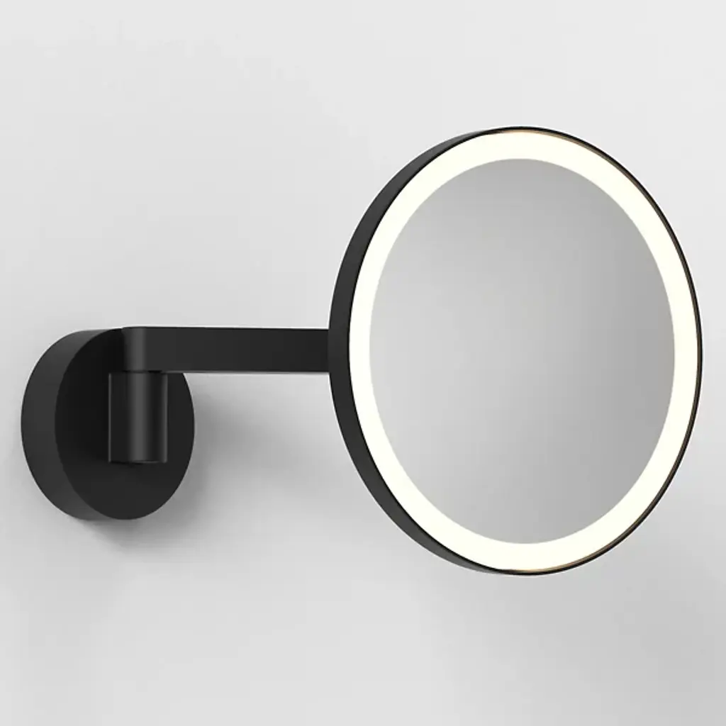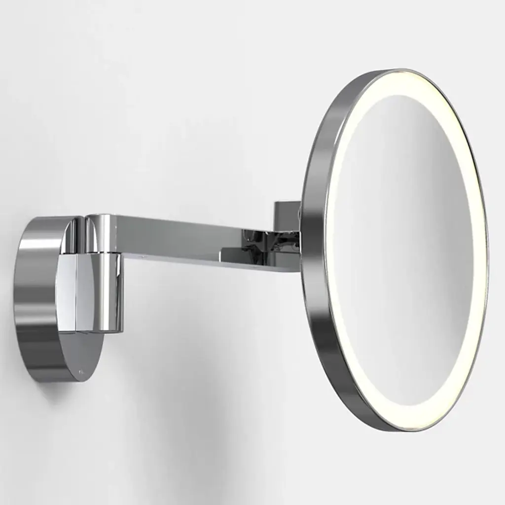 Brightening up one’s lovely features with the wave of the hand. The Nagoya Magnifying Mirror from Astro Lighting requires only a gentle nudge to adjust while its uniform light functions hands-free. The LED ring produces a clean, uniform, and flattering light that passes through a glare-reducing lens. The mirror at the center offers 5x magnification for clear, focused optics. With a sleek arm, this light mirror swings out to be parallel with the wall. A compact backplate adds to the piece’s great versatility in placement. Light operates via switch.