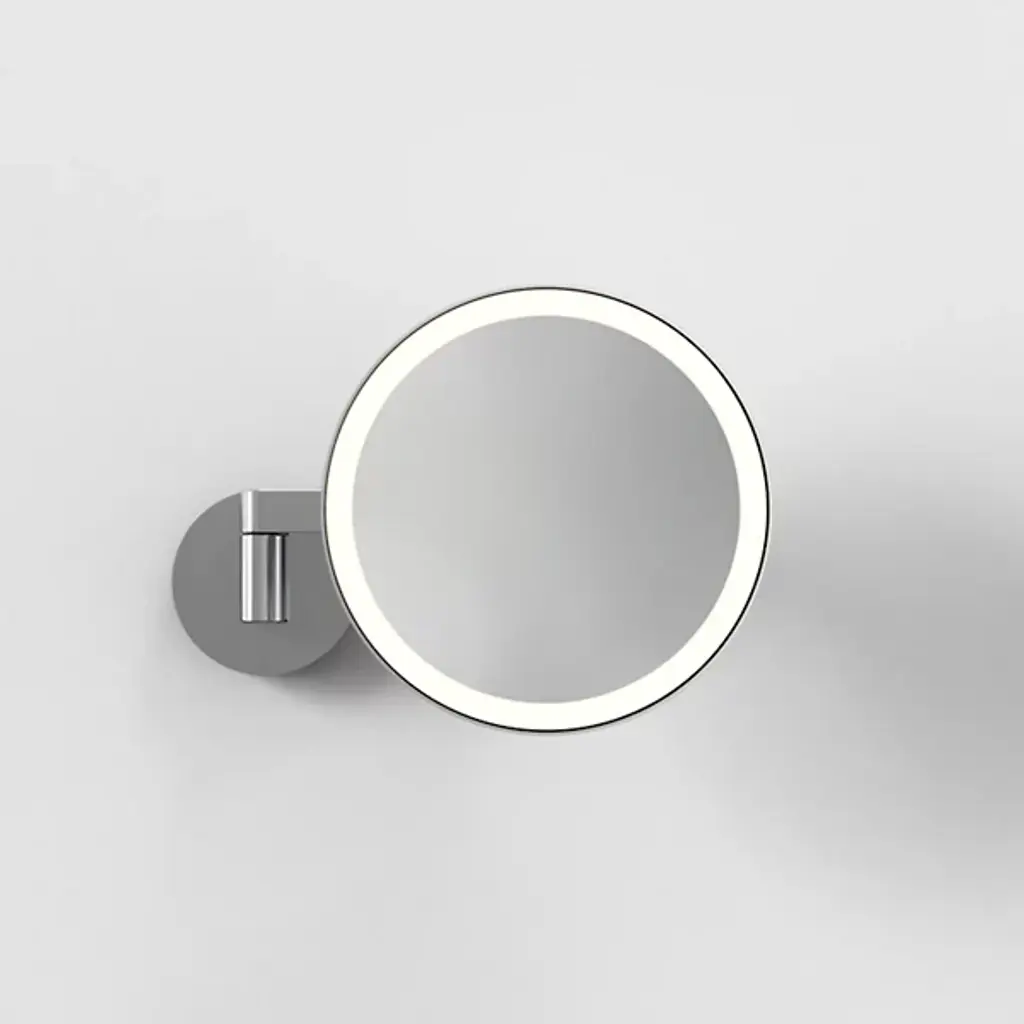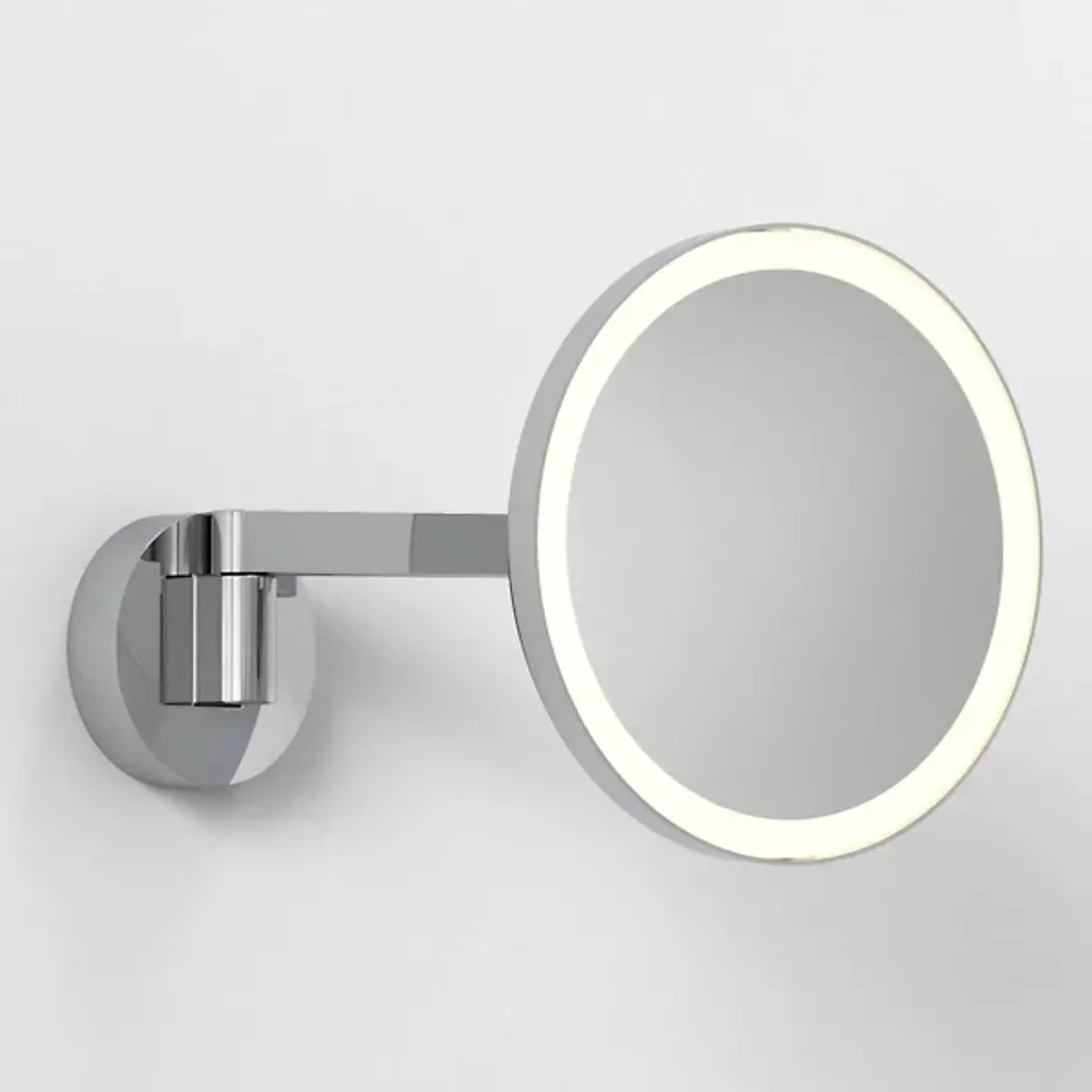 Brightening up one’s lovely features with the wave of the hand. The Nagoya Magnifying Mirror from Astro Lighting requires only a gentle nudge to adjust while its uniform light functions hands-free. The LED ring produces a clean, uniform, and flattering light that passes through a glare-reducing lens. The mirror at the center offers 5x magnification for clear, focused optics. With a sleek arm, this light mirror swings out to be parallel with the wall. A compact backplate adds to the piece’s great versatility in placement. Light operates via switch.