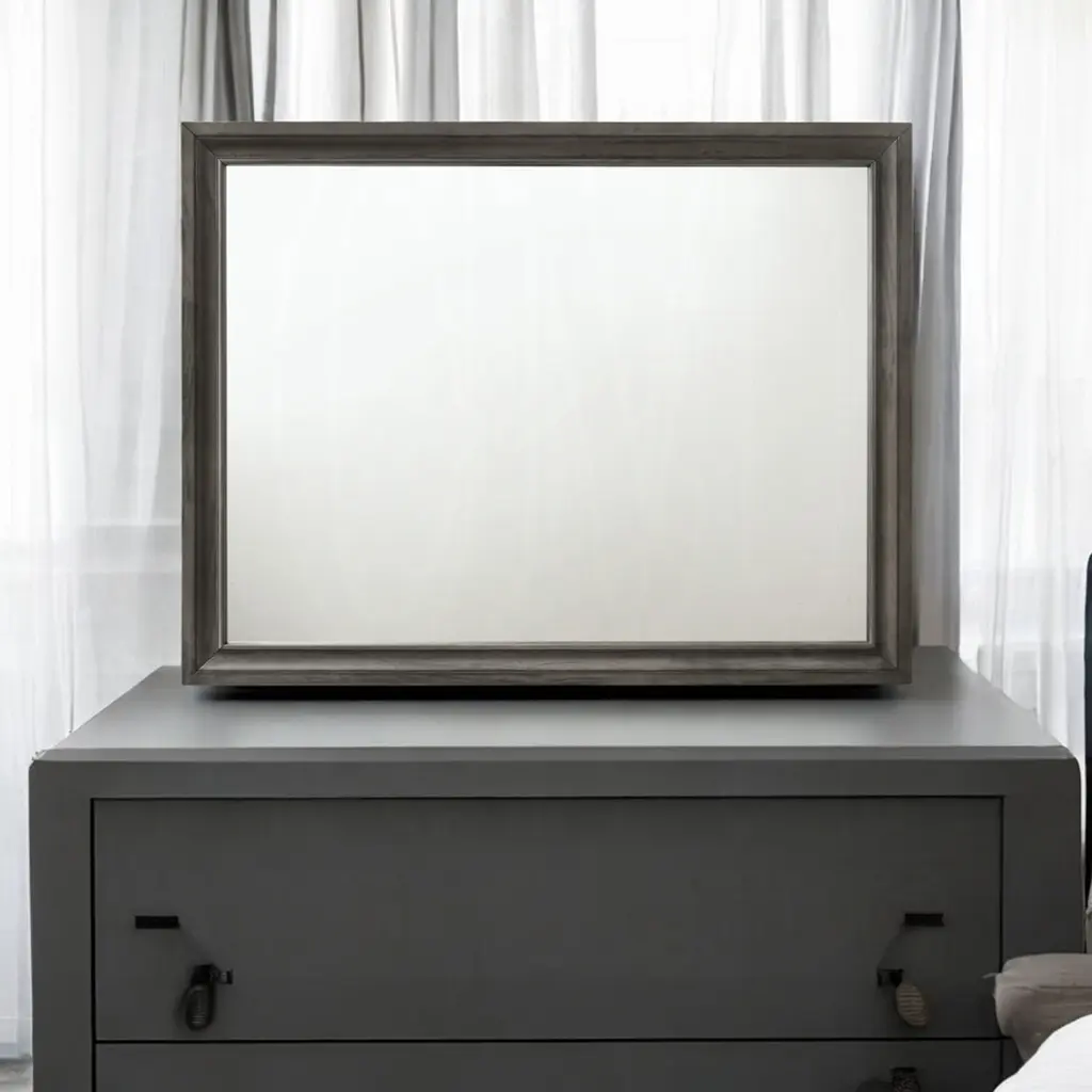 The Naima dresser mirror offers sophisticated look, clean lines and contemporary style. This rectangular contemporary bedroom mirror features a gray finish frame. Add modern elegance and style to any bedroom with this unique mirror