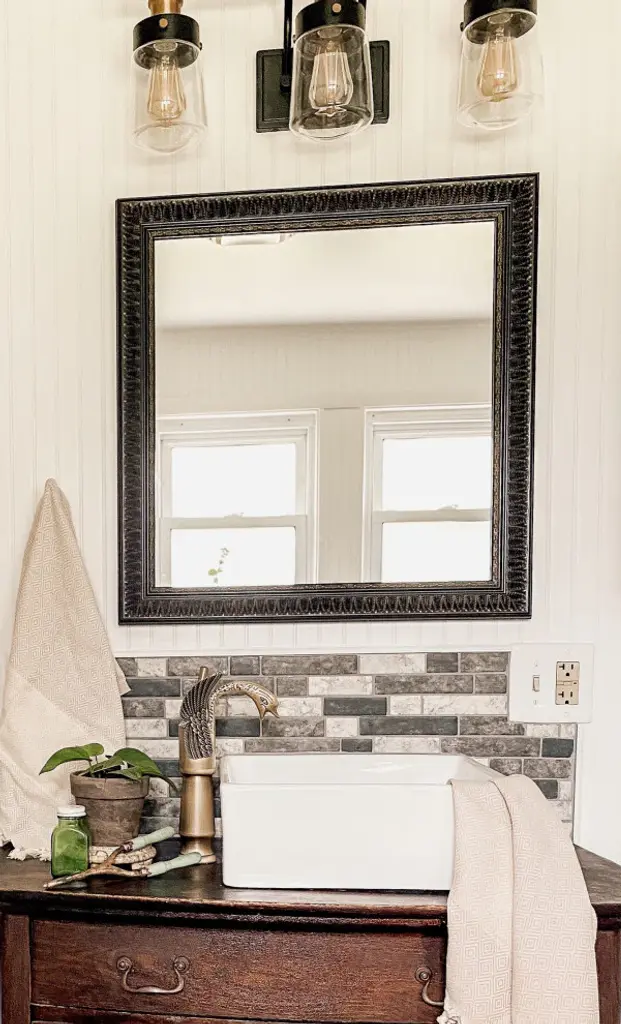 The bronze Napa framed mirror has a distinct botanical feel, with overlapping leaves that line the frame. The bronze finish is graduated from a dark, burnished tone to a brighter polish along the inner edge.Hangrail for installation will be applied on the width of the frame. All assembly hardware and instructions will be included. Additional hangrails are included if the opposite orientation is desired for installation. The dimensions displayed are the final outside dimensions of the frame, including the mirror. CATII safety backing applied on all mirrors. Approved for high-moisture areas such as bathrooms.