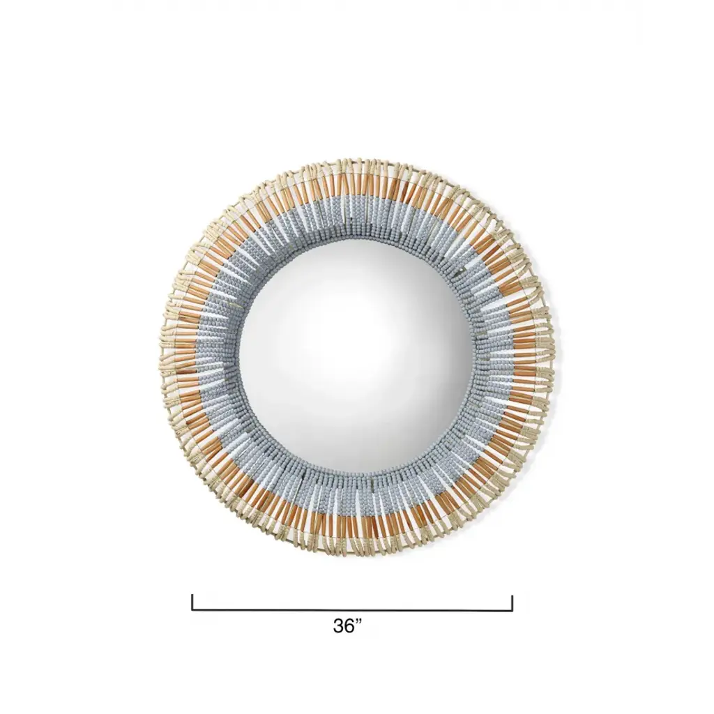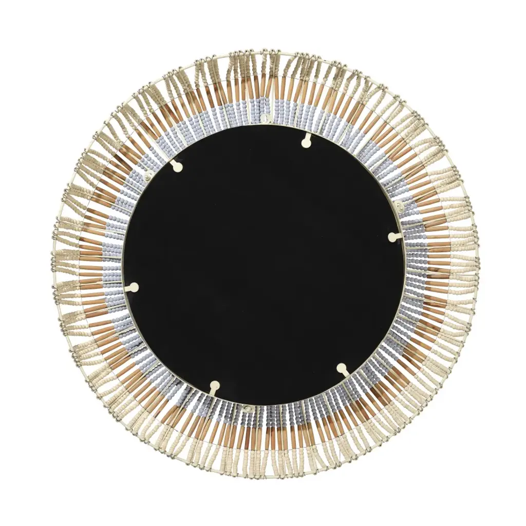 Hundreds of hand carved wood beads are arranged one at a time, by size and shape, to form the glorious frame that surrounds this round wall mirror. As no two beads will be the same, no two mirrors will be identical. Hang several together for an eye-catching display, or place just one within a gallery wall for a reflective counterpoint.