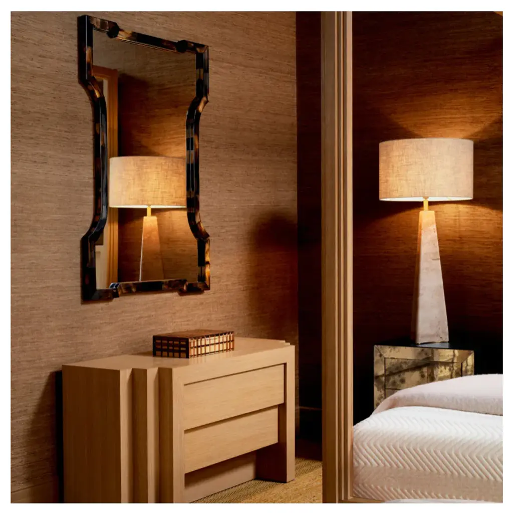 Introducing the Eichholtz Scalamanca Mirror, a luxurious statement piece crafted from 100% natural buffalo horn.Its irregular shape and textured surface make each mirror uniquely captivating. The natural horn finish exudes sophistication, seamlessly blending luxury with timeless style. Elevate your decor with the Scalamanca Mirror, a true embodiment of Eichholtz''s renowned artistry and quality.W37 x D1 x H51 in | Weight 21lbsMaterials | Wood, Mirror glass, Horn, Mild Steel, Nylon